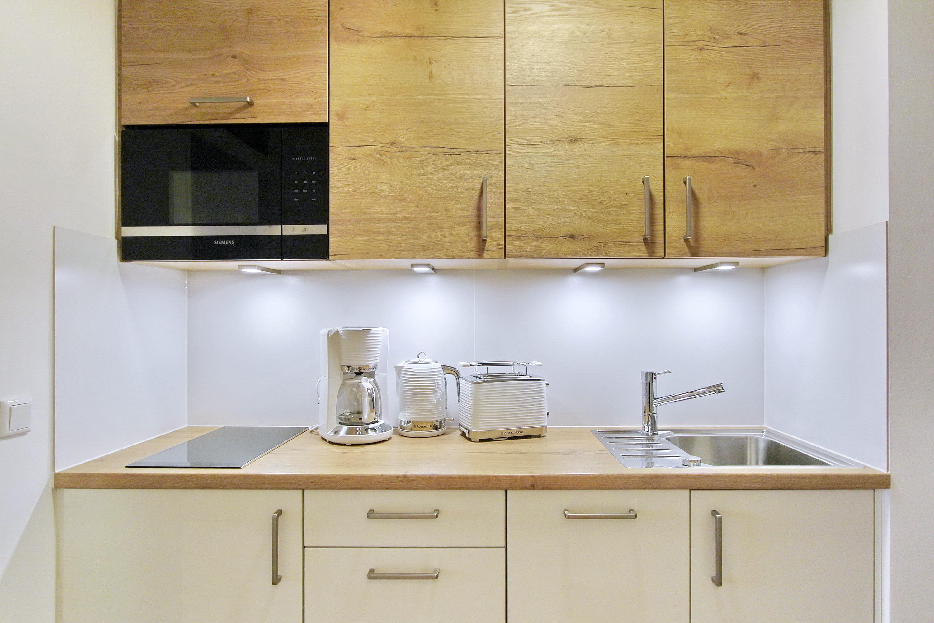 In der 5. Etage des Haus Metropol befindet sich diese Einzimmerwohnung mit einem wunderschönen Blick über den Strand und das Meer. Sie verfügt über einen Balkon zur Westseite mit Balkonmöbeln und Sitzauflagen. Der Wohn-Schlafraum ist eingerichtet mit Einzelschrankbetten (Einstieg nur von einer Seite), einem Essplatz mit 2 Stühlen am Fenster sowie einer bequemen Sitzgruppe mit Sessel. Laminatfußboden wurde in der ganzen Wohnung verlegt. Das Badezimmer verfügt über eine Dusche und die Einbauküche im Flur über eine Backofen und ein Ceranfeld mit 4 Kochfeldern. Zur technischen Ausstattung dieser Wohnung gehört: ein Flachbildfernseher, Radio mit CD Spieler. Ein freies WLAN Netzwerk (WEG Haus Metropol - Passwortfrei - ohne Gewähr) steht ihnen kostenfrei zur Verfügung. Größe dieser Nichtraucherwohnung: ca. 34 ².