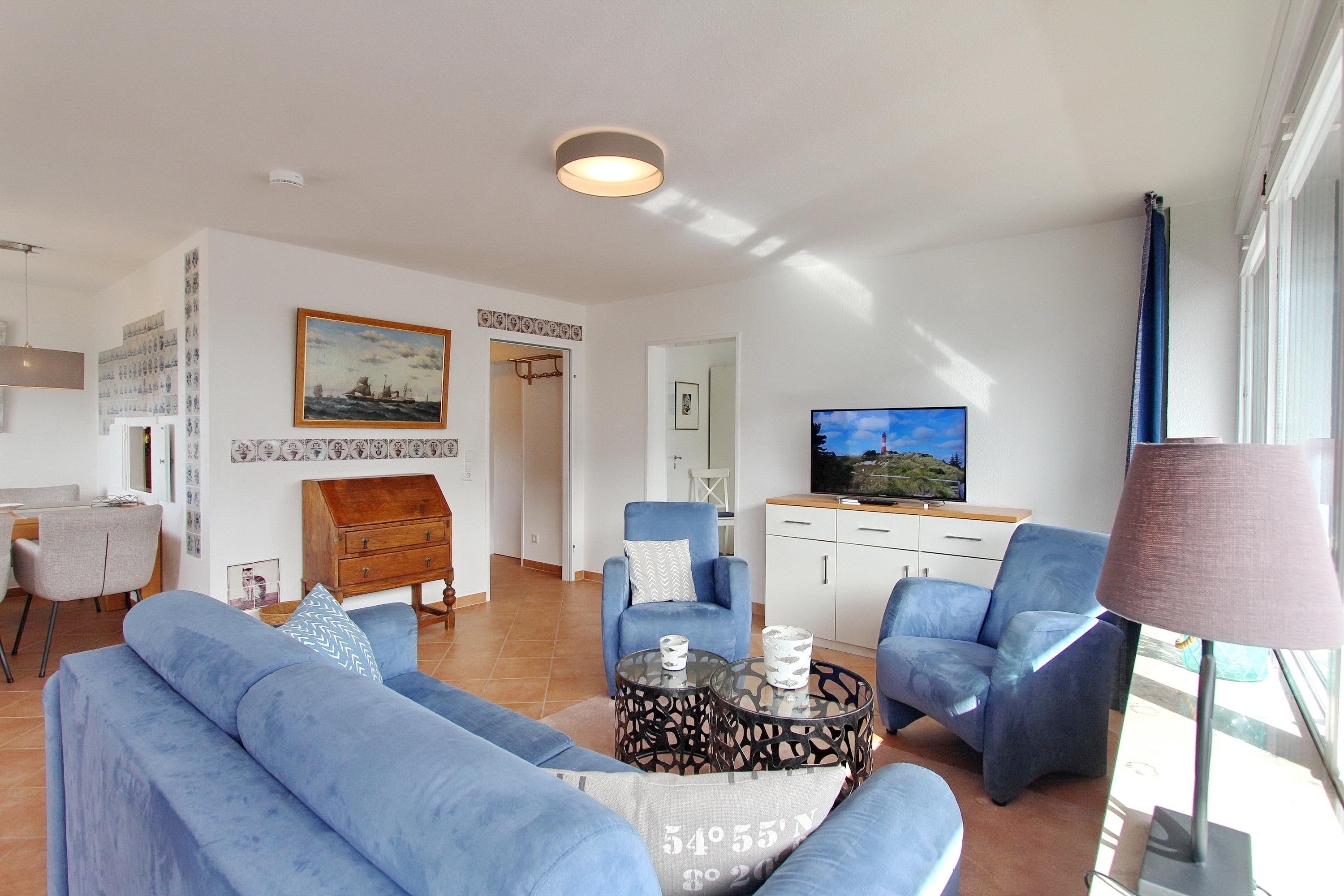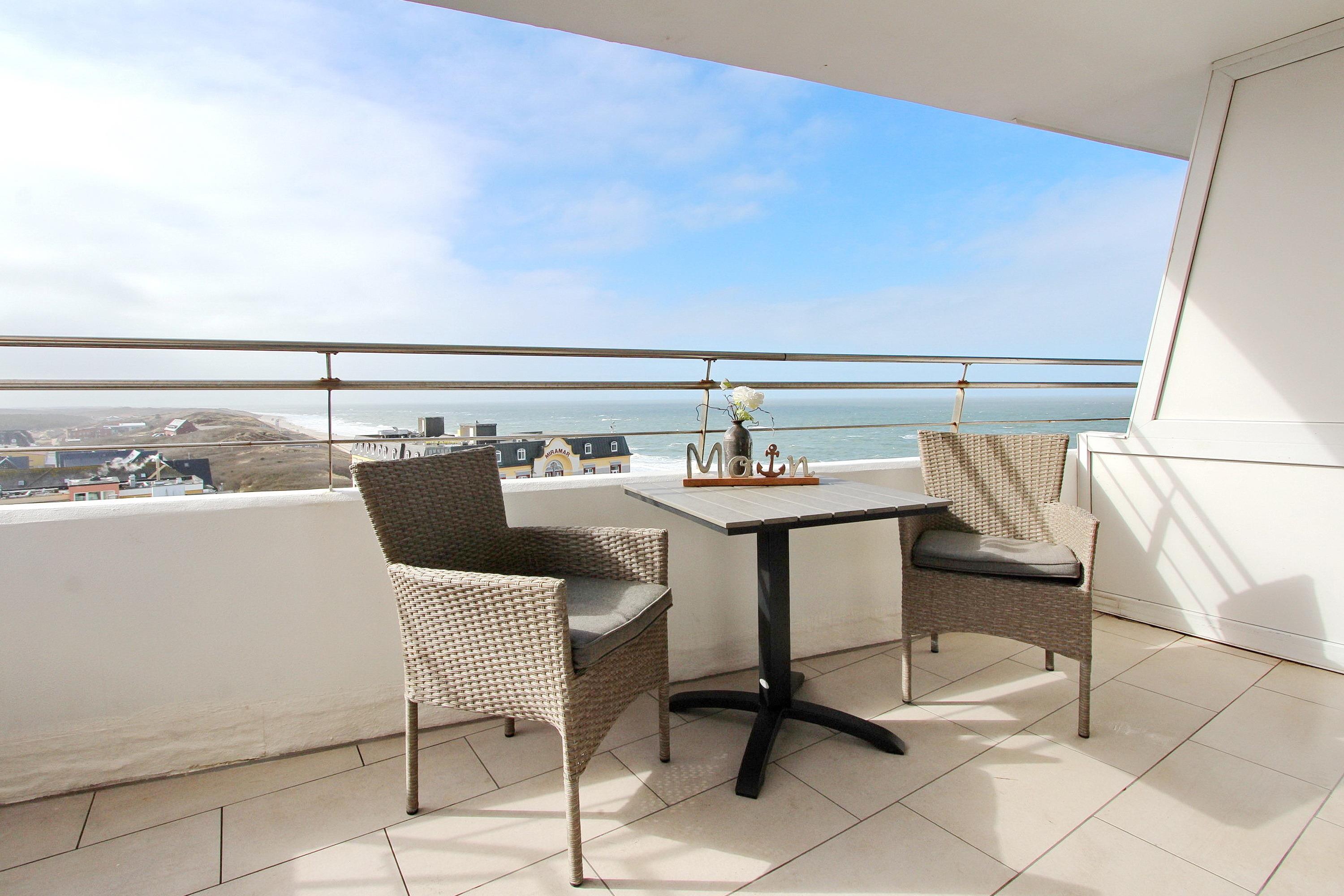 Die wunderschöne, freundlich eingerichtete 2 Zimmer Wohnung in der 7. Etage bietet Ihnen einen herrlichen Blick über die südliche Insel und die Nordsee. Das Wohnzimmer ist aufgrund der großen Fensterfronten und der beiden Balkone in Süd- und Ostrichtung lichtdurchflutet. Beide Balkone sind mit Tisch und Sesseln sowie Kissenauflagen eingerichtet.