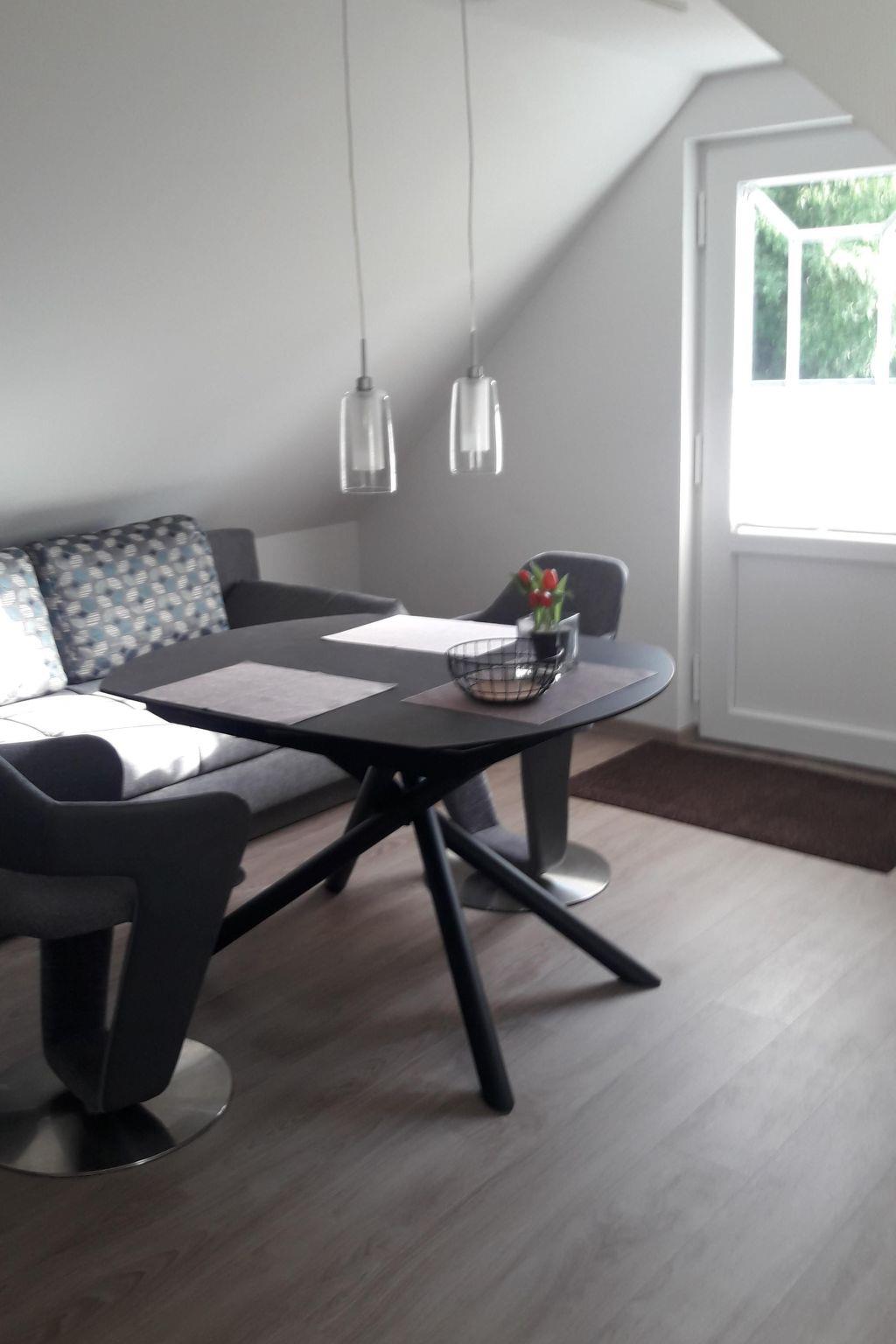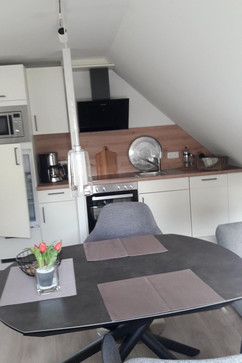 1.Wohnbereich mit Küchenzeile mit Herd, Backofen, Mikrowelle, Kühlschrank, Spülmaschine, Kaffeemaschine, Wasserkocher, Geschirr usw. für 4 Personen,Fernseher, W - Lan2.Schlafzimmer mit Doppelbett und Einbauschrank3.Badezimmer mit Dusche, Waschbecken, Toilette und Schränke, Fön4.Flurbereich5.Seperater Eingang über eine Wendeltreppe6.Bettwäsche und Handtücher vorhandenAlles Neuwertig!