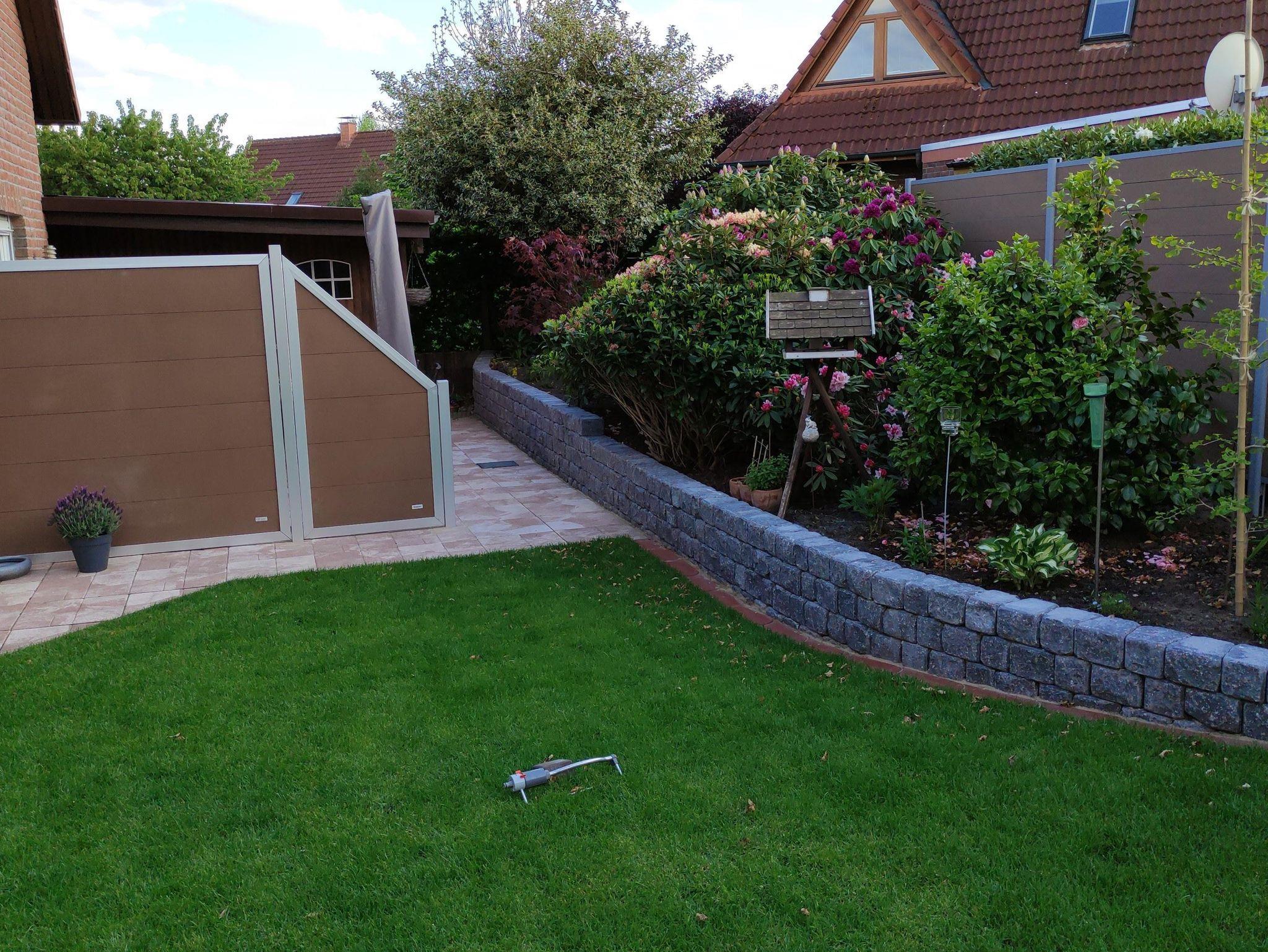 Auf der Rückseite zum Garten hin befindet sich eine große möblierte Terrasse, auf der auch die Möglichkeit zum Grillen besteht.