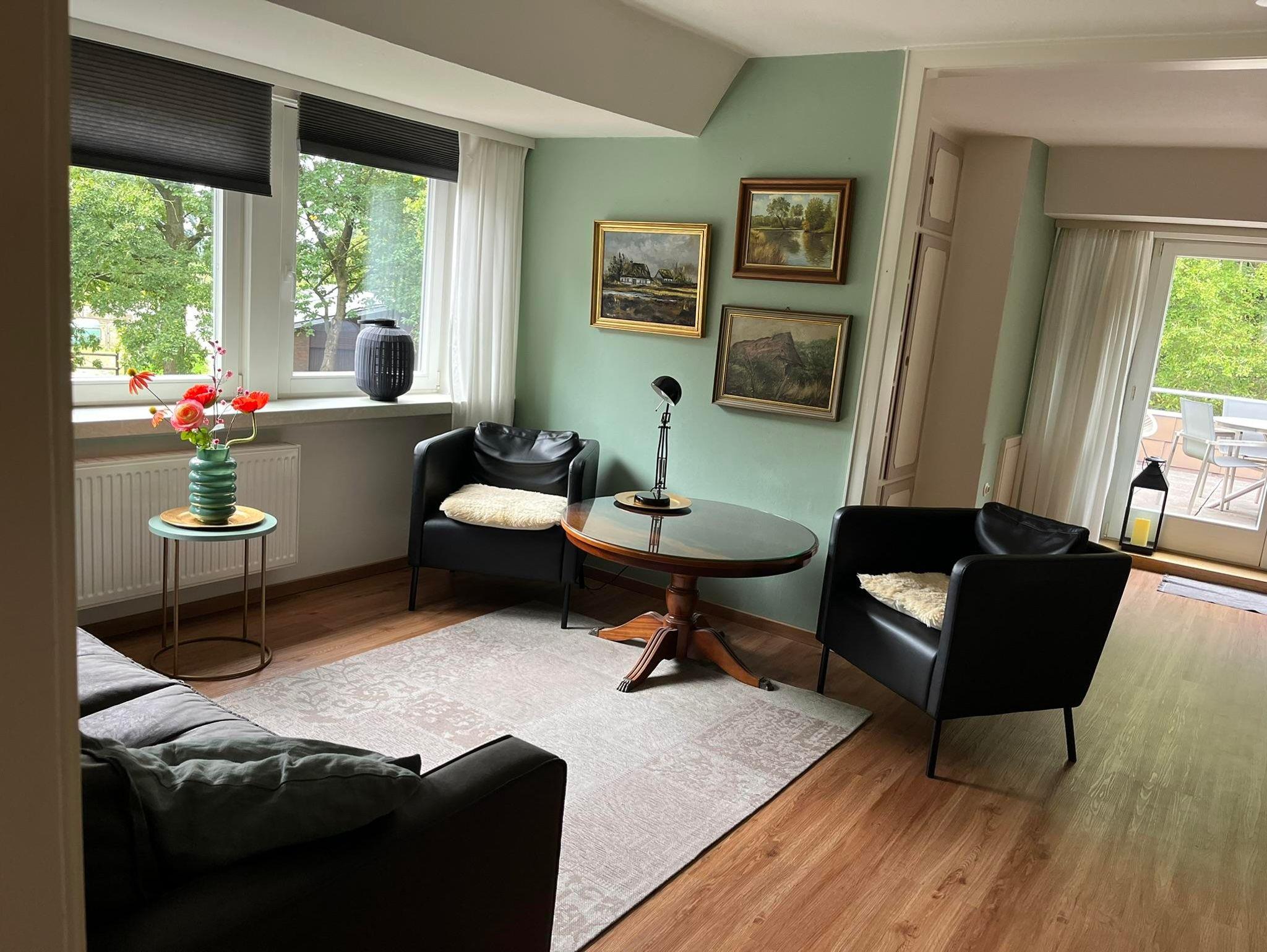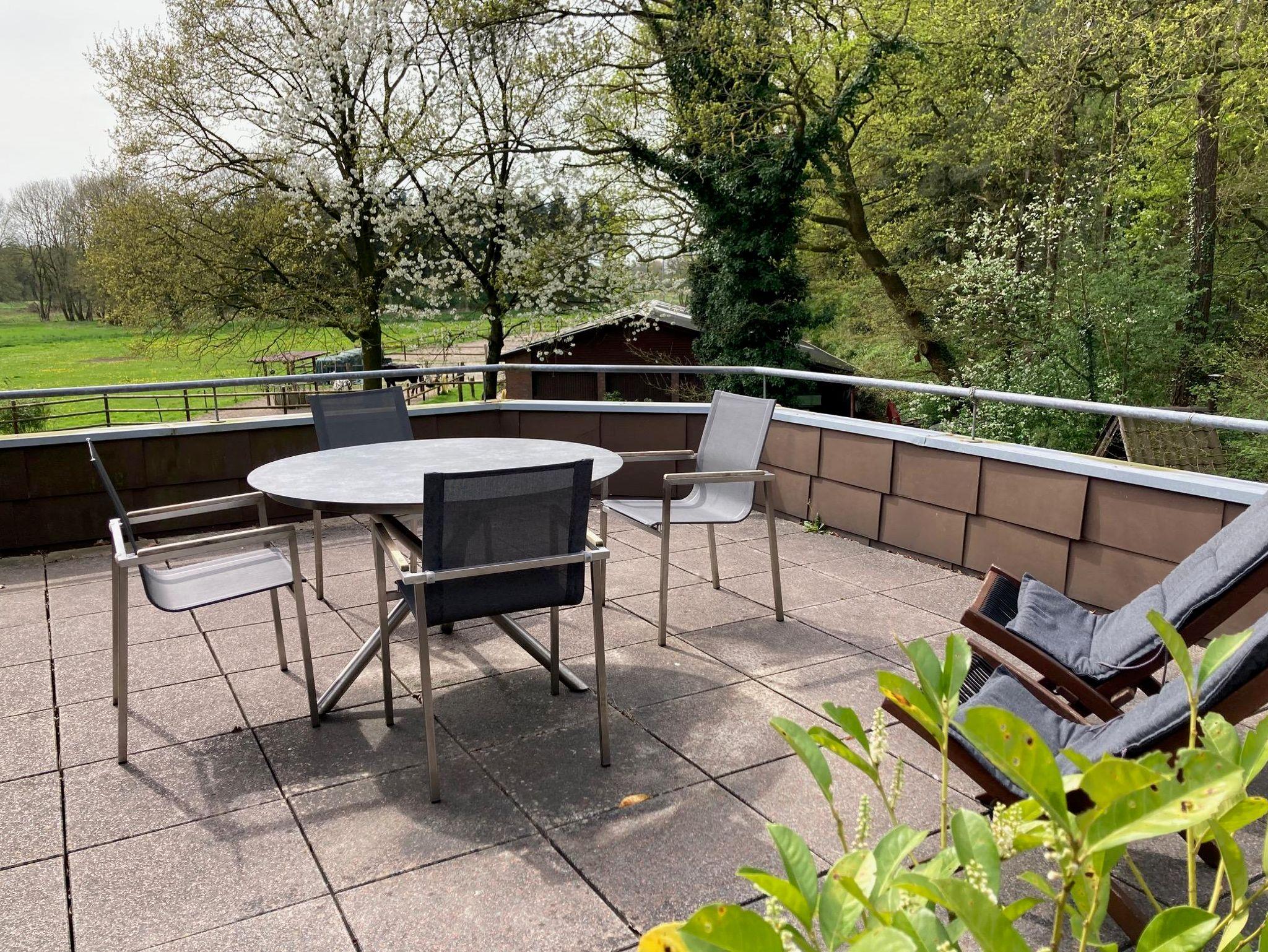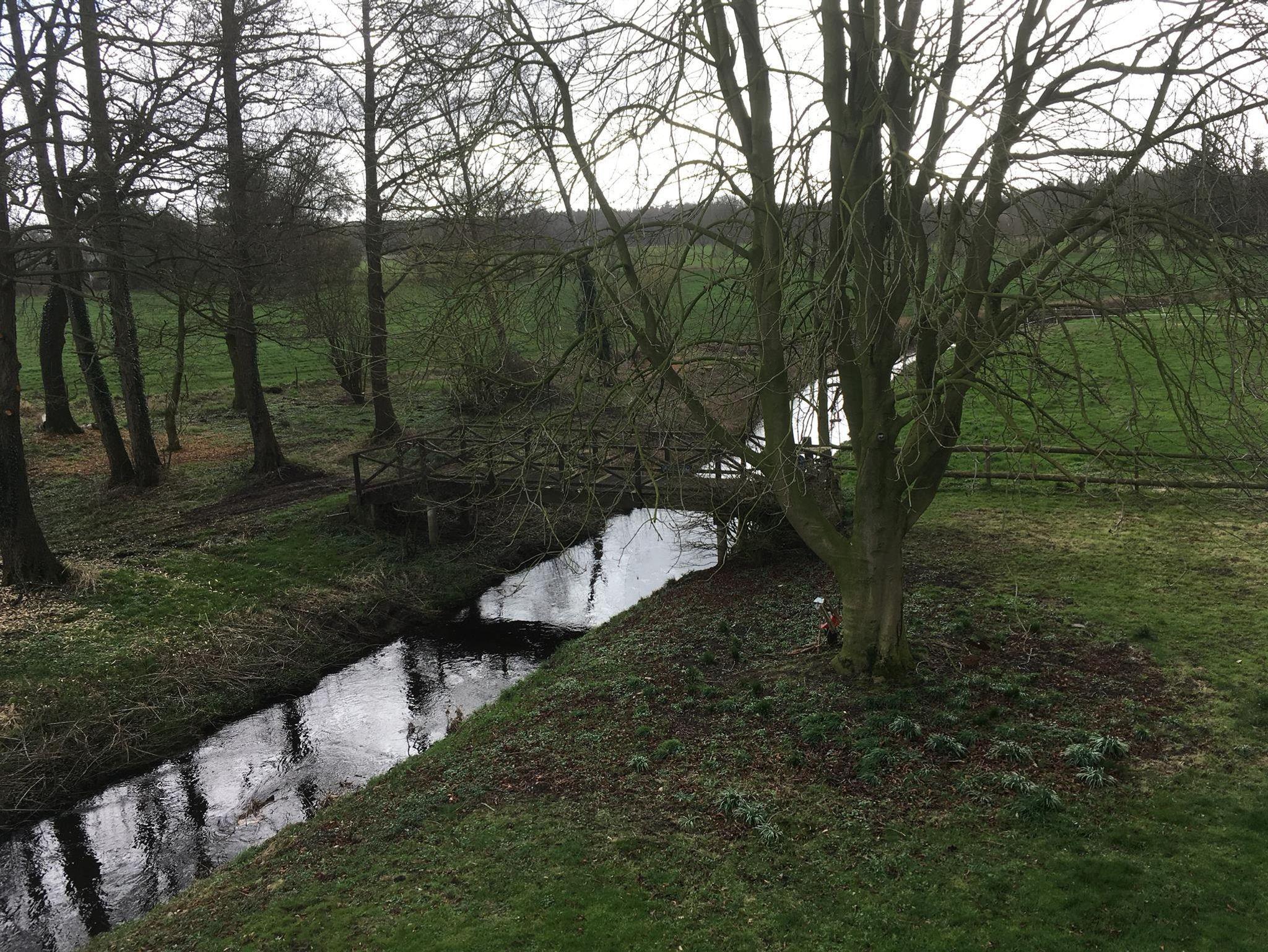 Die Wohnung hat zu allen Seiten hin Aussicht auf die Natur: von der Küche aus schaut man auf die Bäke vor dem Haus, vom Wohnzimmer aus auf die Wiesen, von auf der Terasse aus auf den angrenzenden Wald (beinahe wie im Baumhaus). 2 separate Schlafzimmer stehen zur Verfügung: das Bäkenzimmer hat 2 Einzelbetten, das Brückenzimmer hat ein 1,80 x 2,00 m großes Boxspringbett.