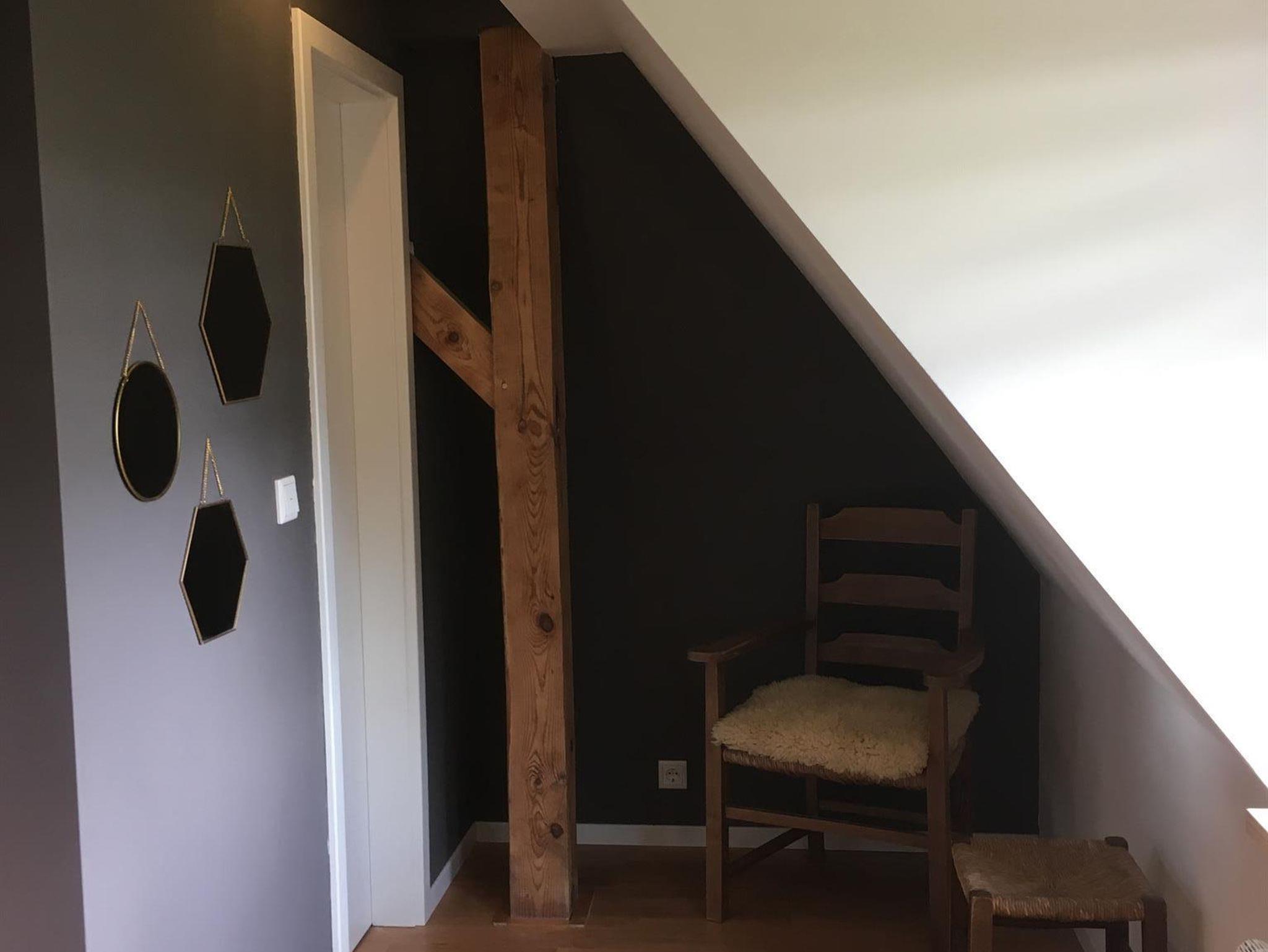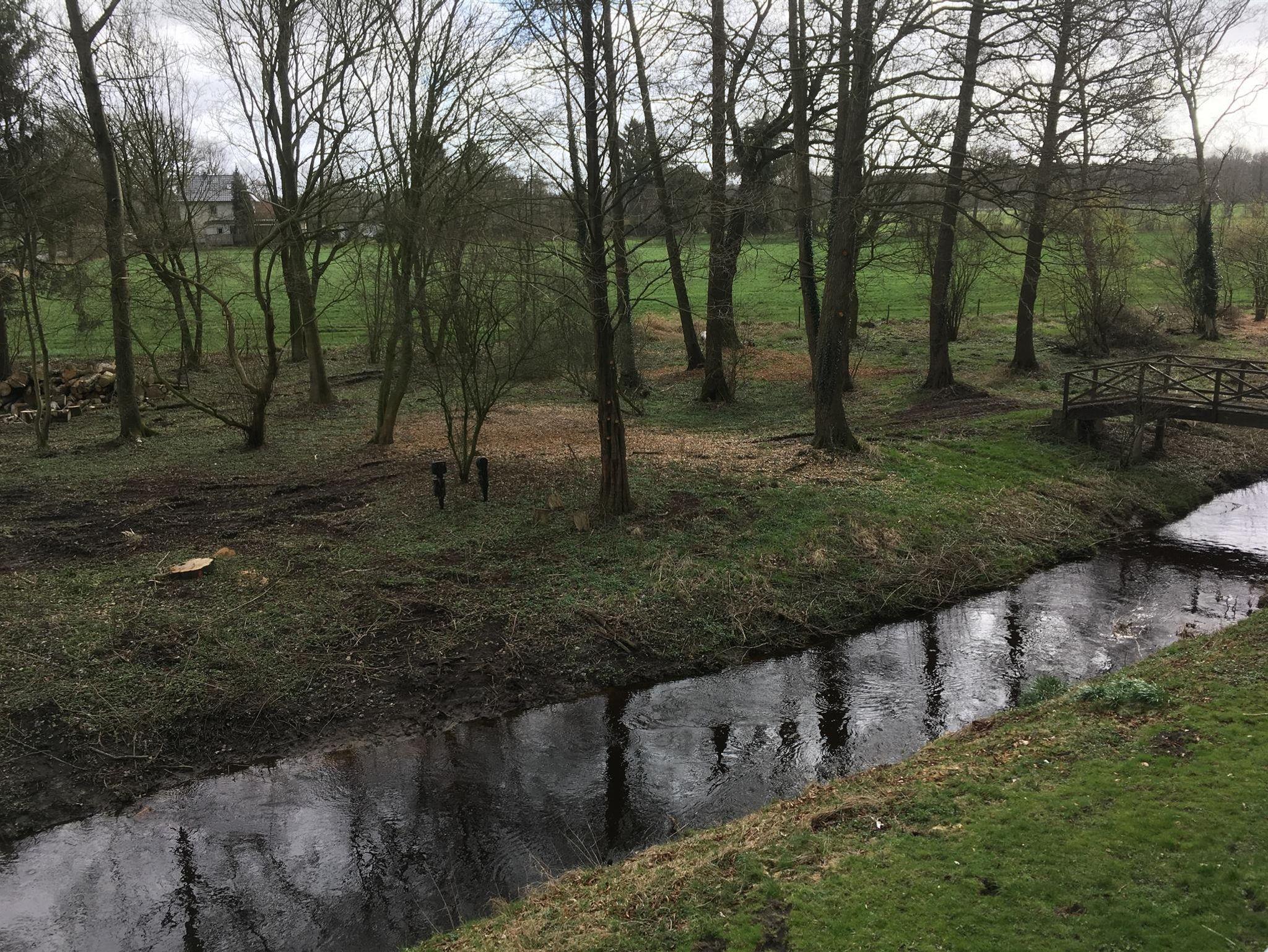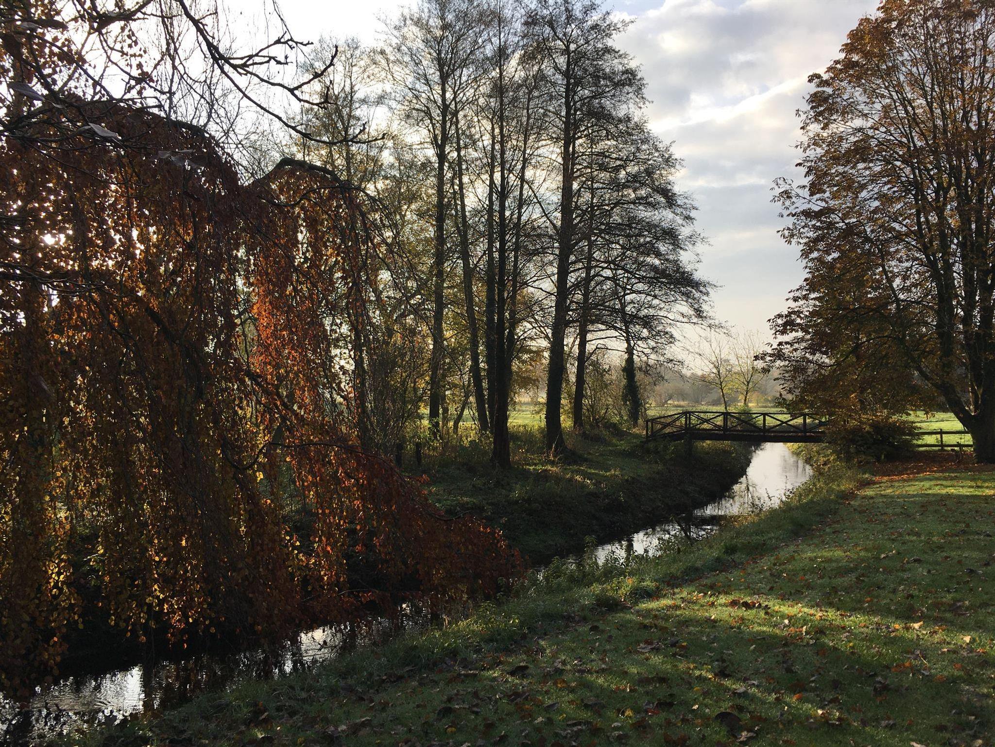 Die Wohnung hat zu allen Seiten hin Aussicht auf die Natur: von der Küche aus schaut man auf die Bäke vor dem Haus, vom Wohnzimmer aus auf die Wiesen, von auf der Terasse aus auf den angrenzenden Wald (beinahe wie im Baumhaus). 2 separate Schlafzimmer stehen zur Verfügung: das Bäkenzimmer hat 2 Einzelbetten, das Brückenzimmer hat ein 1,80 x 2,00 m großes Boxspringbett.