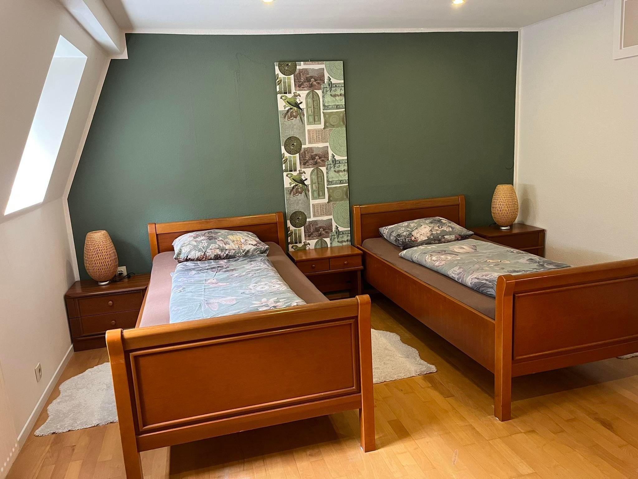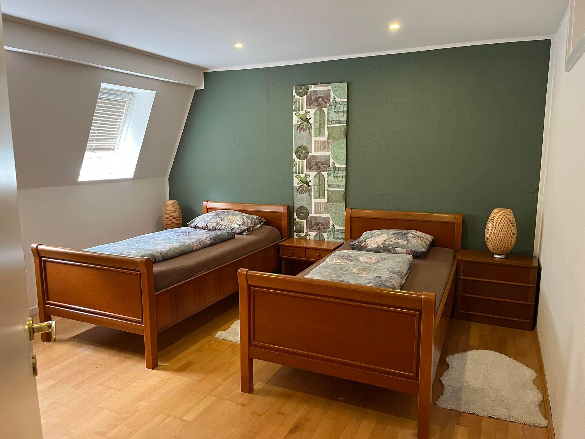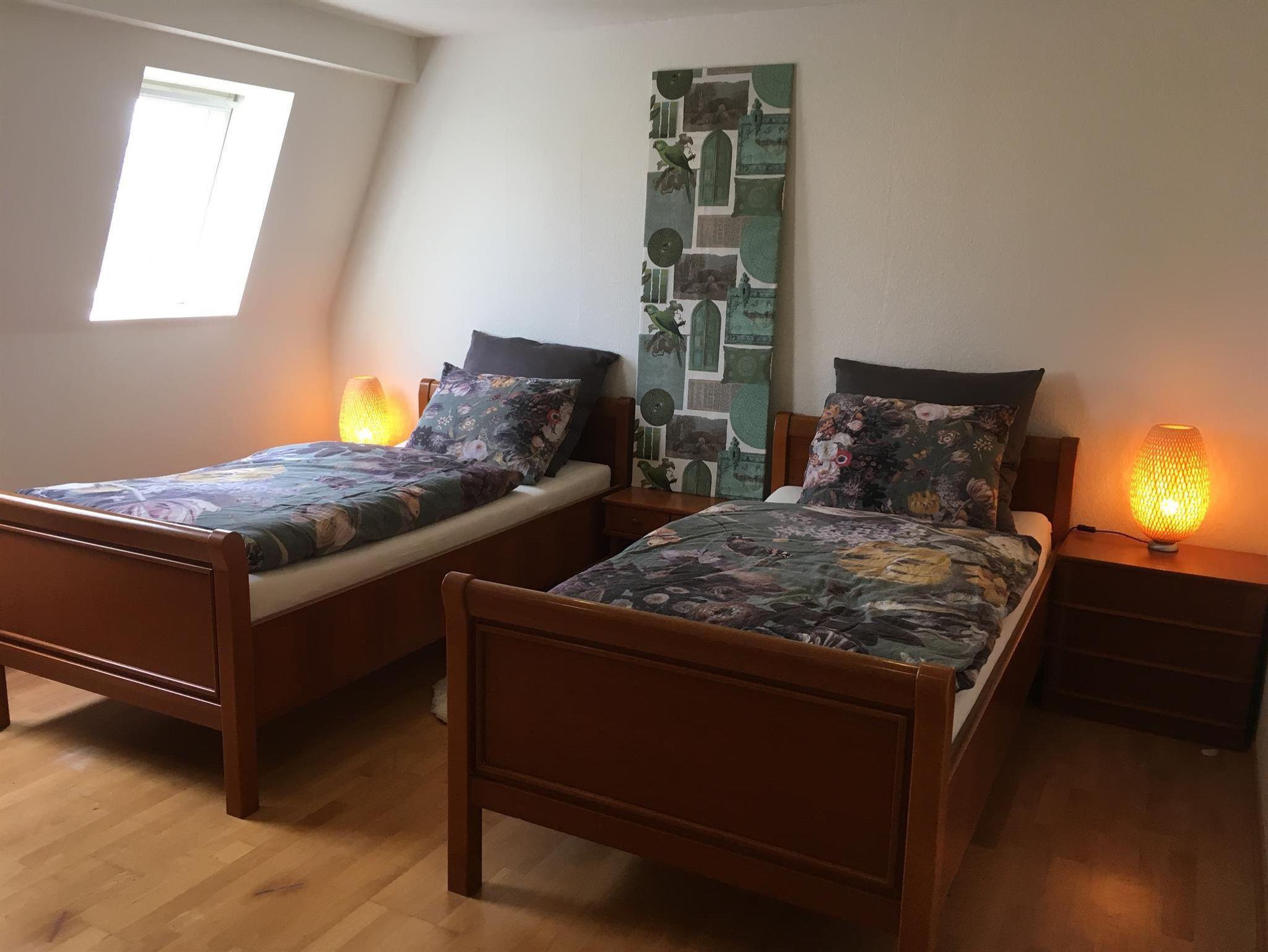 Im Haus befinden sich oben eine komplette Ferienwohnung (Wohnzimmer, Küche, 2 Schlafzimmer, Bad) und 2 Einzelzimmer inkl. eigenen Bädern und gemeinsamer Küche.