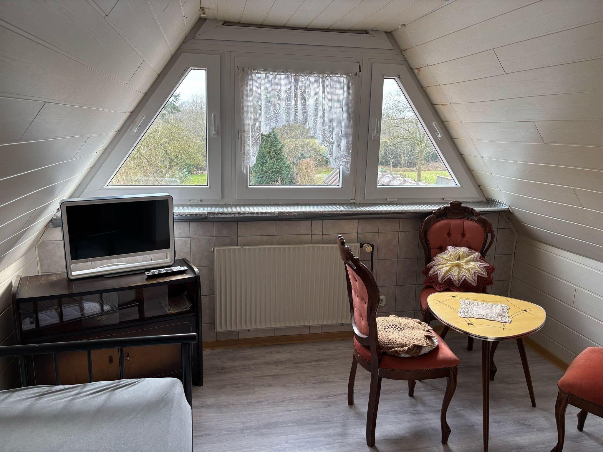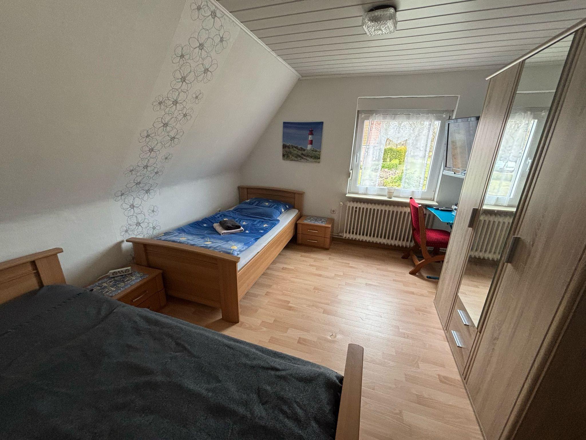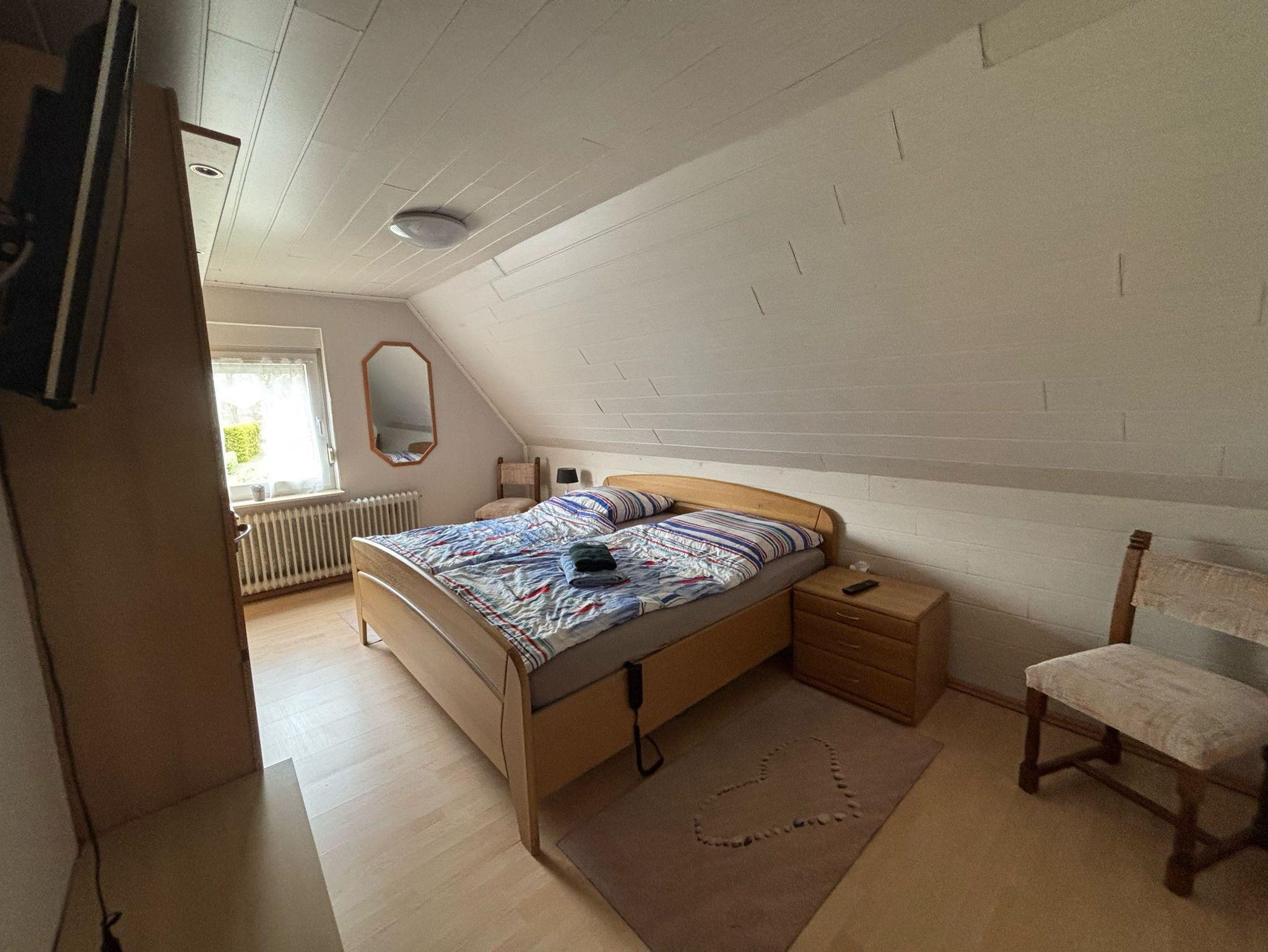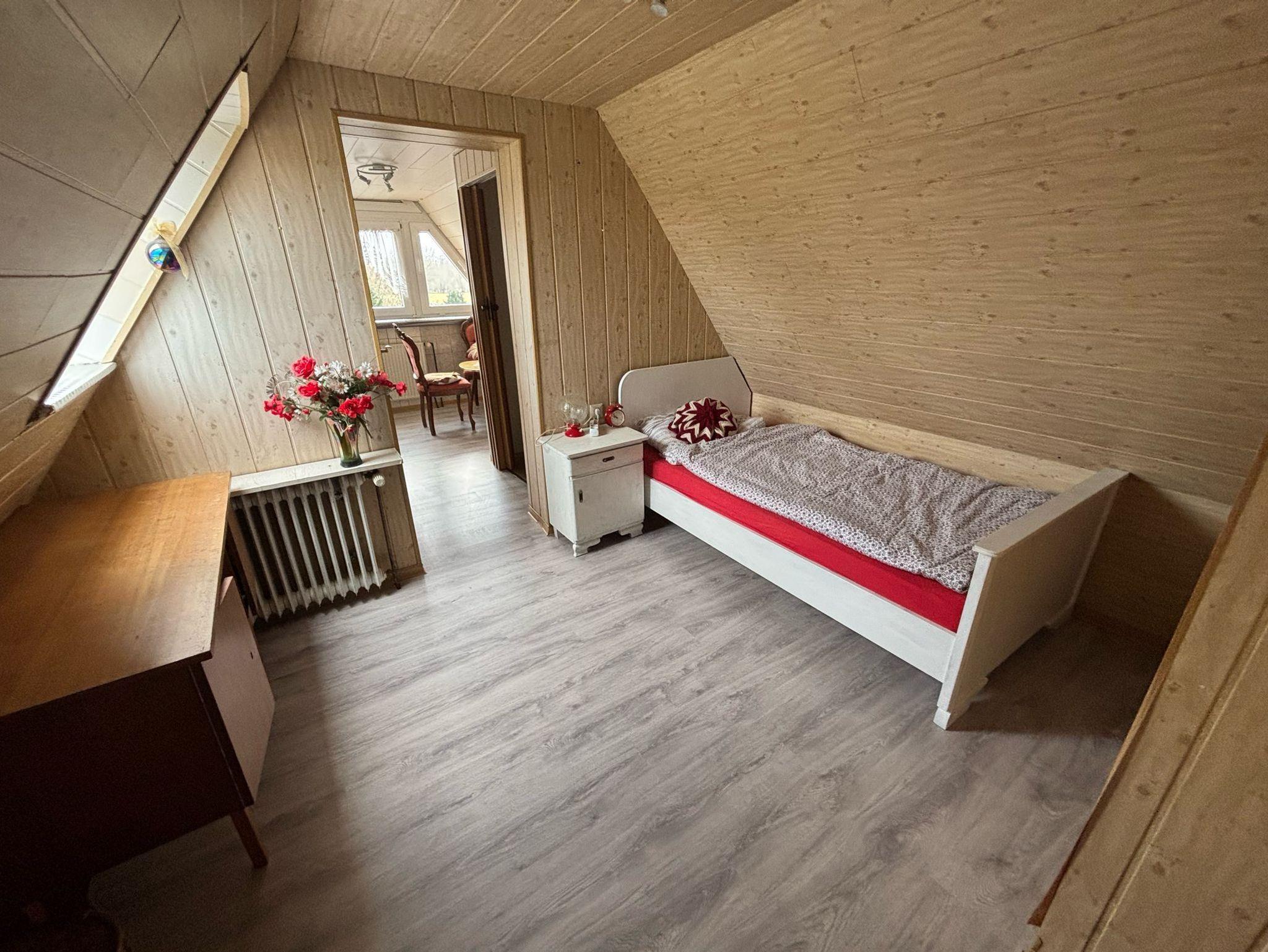 Im Dachgeschoss befindet sich ein Durchgangszimmer mit einem Einzelbett, einem Schreibtisch und einem Kleiderschrank und ein weiteres Zimmer mit Einzelbett, TV und Gäste-WC.