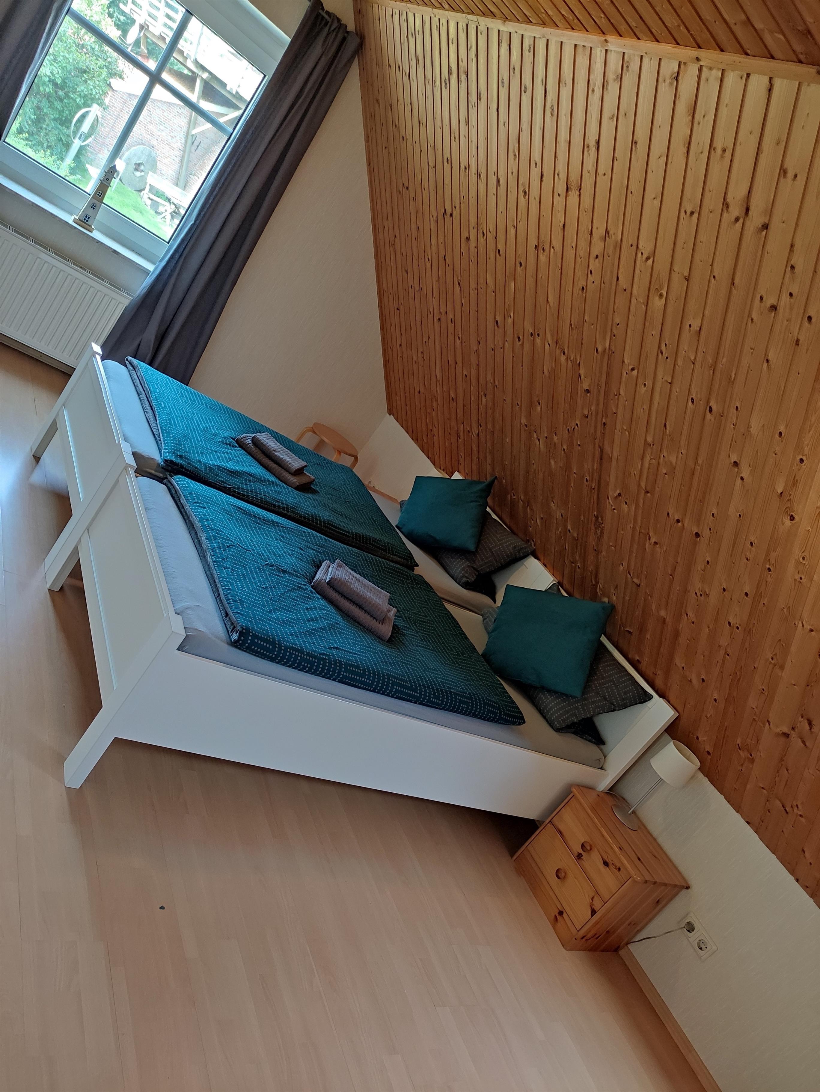 Im Obergeschoß befinden sich 2 Schlafzimmer mit 2 Einzelbetten (zum großen Bett zusammenschiebbar) und das Duschbad.