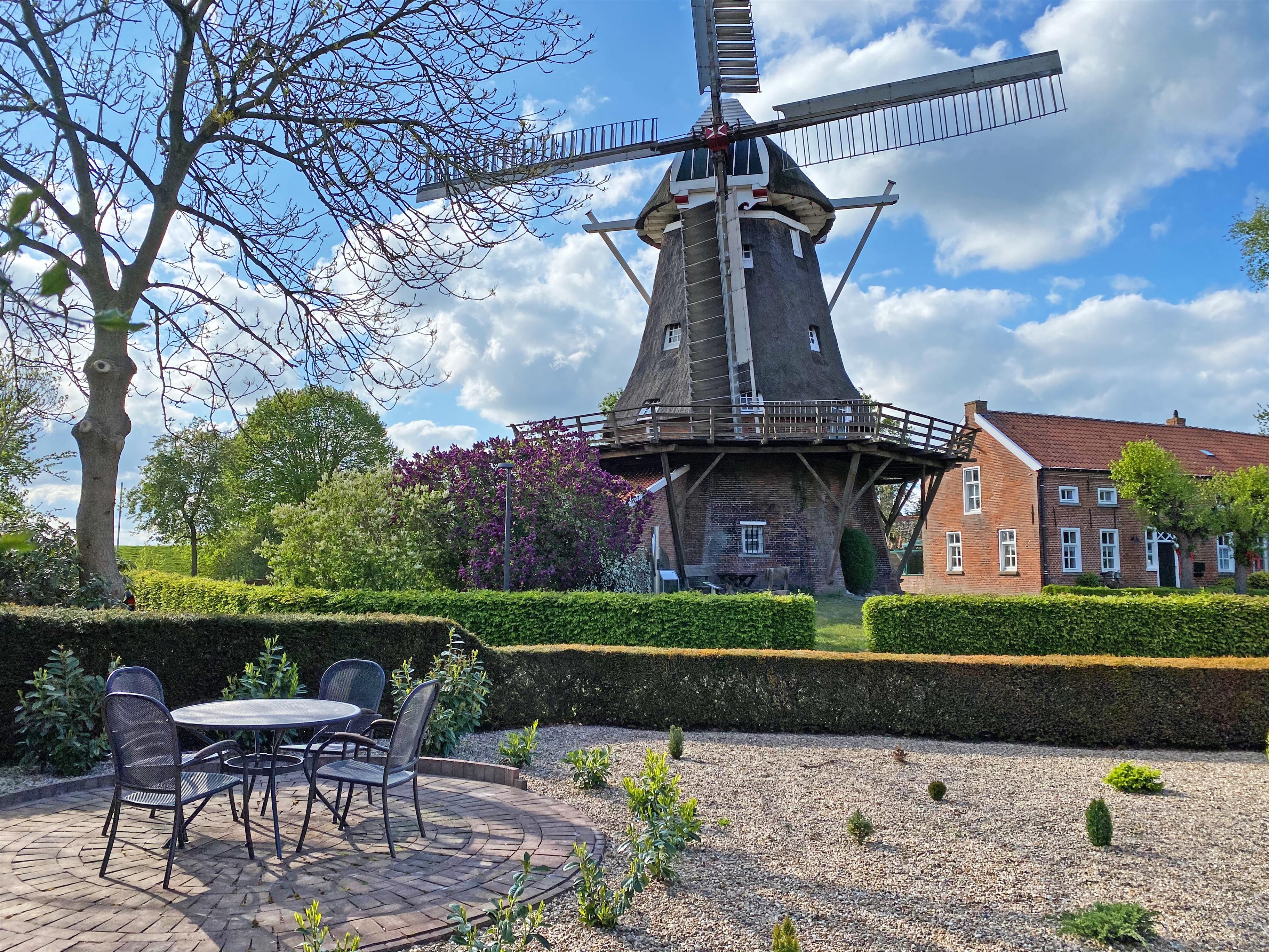 Gemütliche Ferienwohnung "Zur Mühle" in Westoverledingen mit Terrasse, Garten und Blick auf Ems und Mühle.