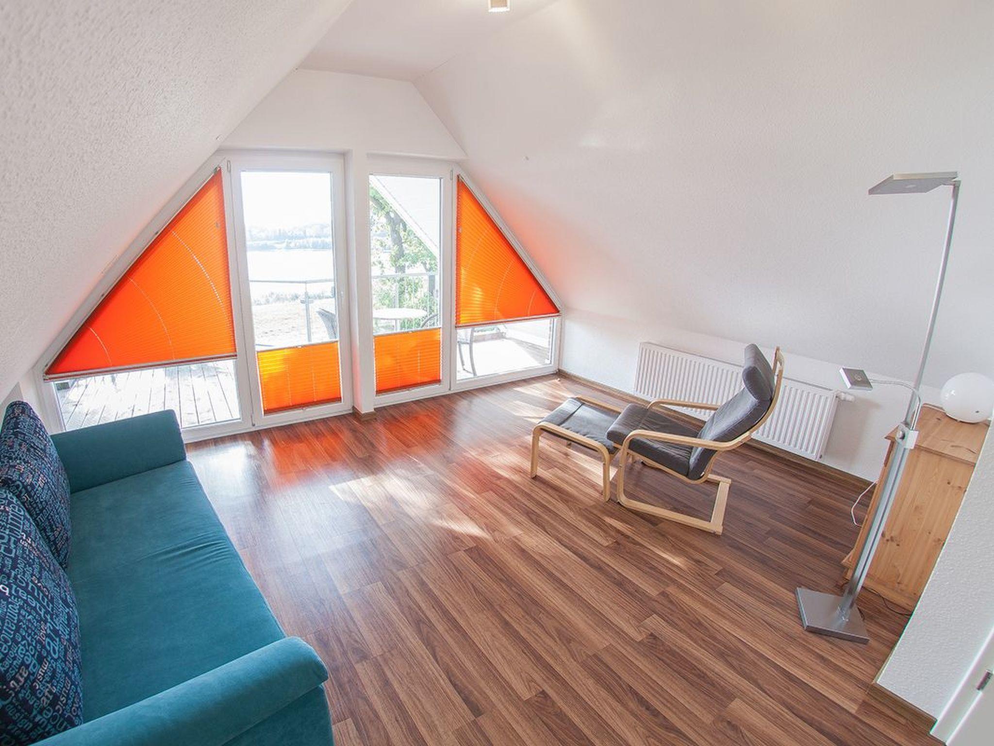Das neu errichtete und 80 m² große Massivhaus bietet ausreichend Platz für bis zu sechs Personen. Es verfügt über einen gemütliches Wohn-/Essbereich mit einer behaglichen Sitzgarnitur, einem Sessel, einem Couchtisch, einem Flachbildfernseher mit CD/DVD Player, einer Musikanlage, einem Kaminofen sowie einem Esstisch mit Platz für bis zu sechs Personen und Panoramafenstern zur Seeseite. Die daran angrenzende, offen gestaltete Küche ist mit einem Backofen, einem Cerankochfeld, einem (Tief-)Kühlschrank, einer Spülmaschine, einer Kaffeemaschine, einem Wasserkocher, einer Mikrowelle und einem Toaster komplett ausgestattet und lässt somit keine Wünsche offen. Ebenfalls im Erdgeschoss befindet sich ein Schlafzimmer mit einem Doppelbett (1,80 m Breite) und das moderne Badezimmer mit einer Dusche, einer Toilette, einem Waschbecken, einem Föhn und Tageslicht. Die offene Holztreppe führt auf eine großzügige Galerie, wo sich eine Schlafcouch für zwei Personen befindet. Daran angrenzend befindet sich das zweite Schlafzimmer mit zwei Einzelbetten (0,90 m Breite) und das Gäste-WC mit einer Toilette und einem Waschbecken. Eine Heizung ist in allen Räumen verfügbar, eine Fußbodenheizung nur teilweise. Außerdem steht eine Waschmaschine und Gesellschaftsspiele für Groß und Klein für Sie bereit.