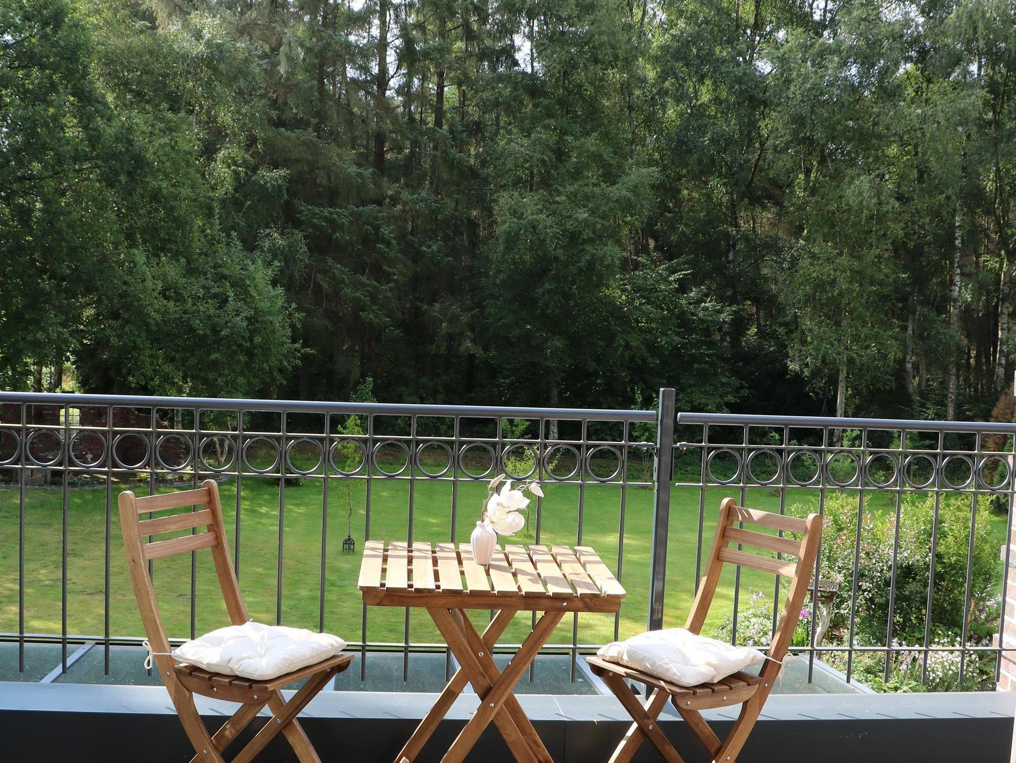 Aus Küche, Wohnzimmer und Schlafzimmer gelangen Sie direkt auf die 50 m² große Dachterrasse mit Blick auf Wald und Wiesen. Genießen Sie von dort aus in Ruhe den Sonnenaufgang, Ihren Kaffee aus dem Kaffeevollautomaten, das Vogelgezwitscher oder ein gemeinsames Essen.