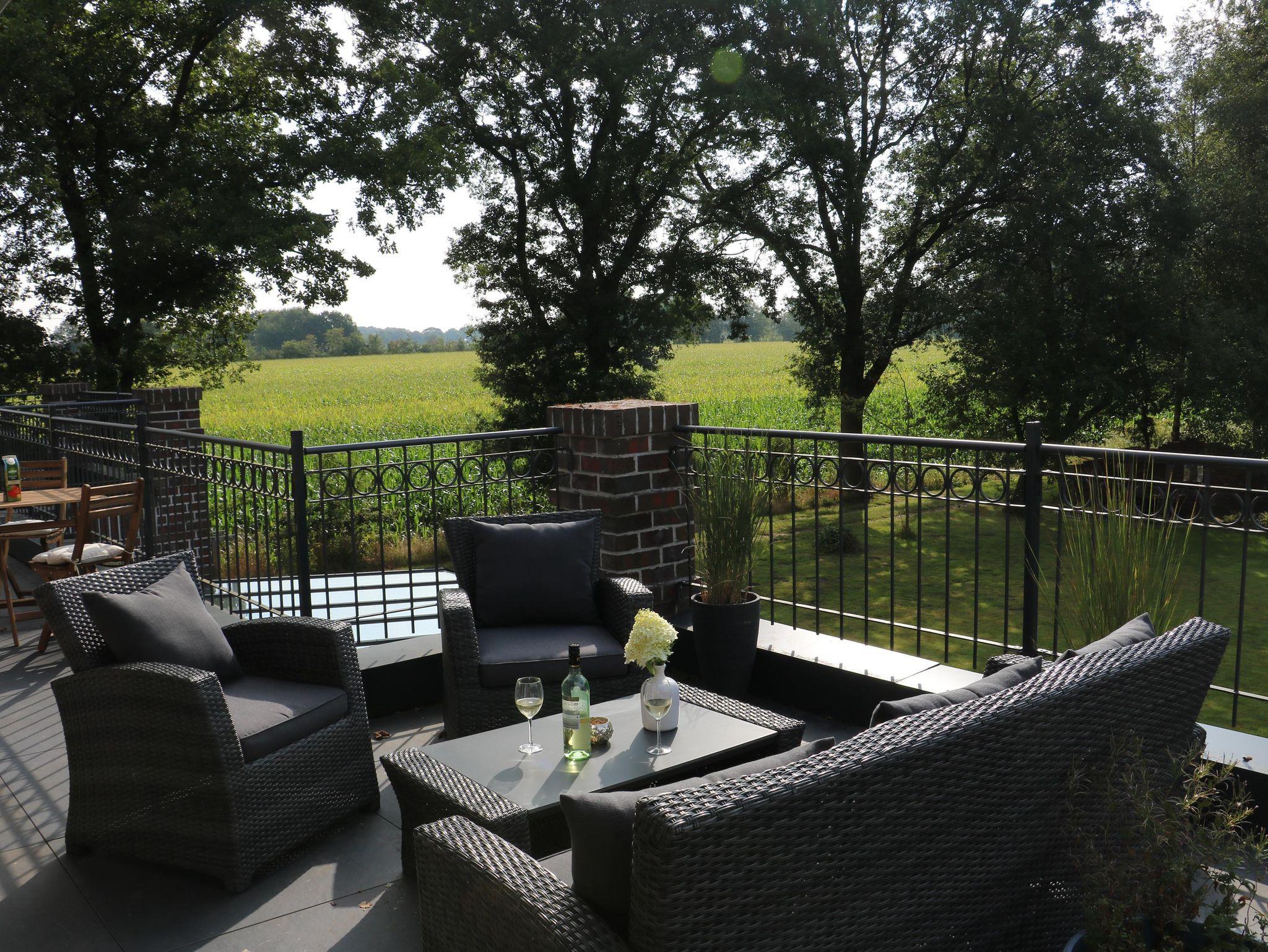 Moderne Ferienwohnung "Am Schippstroth" mit großer Dachterrasse in idyllischer Ammerland-Landschaft.