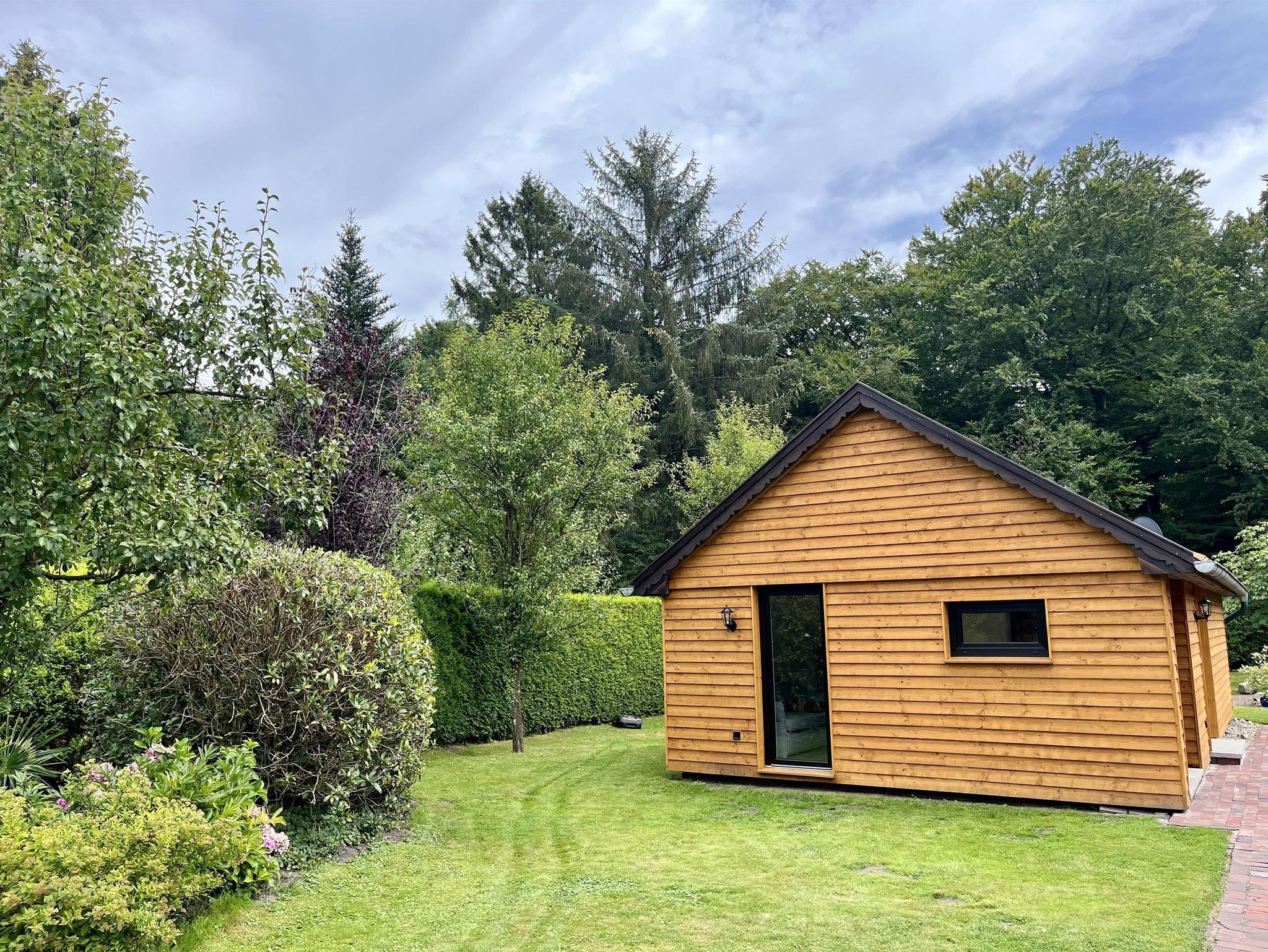 Gemütliches, frisch saniertes Blockhaus am Waldrand in Wiefelstede mit Garten und WLAN, ideal für Fahrradliebhaber und Familien.
