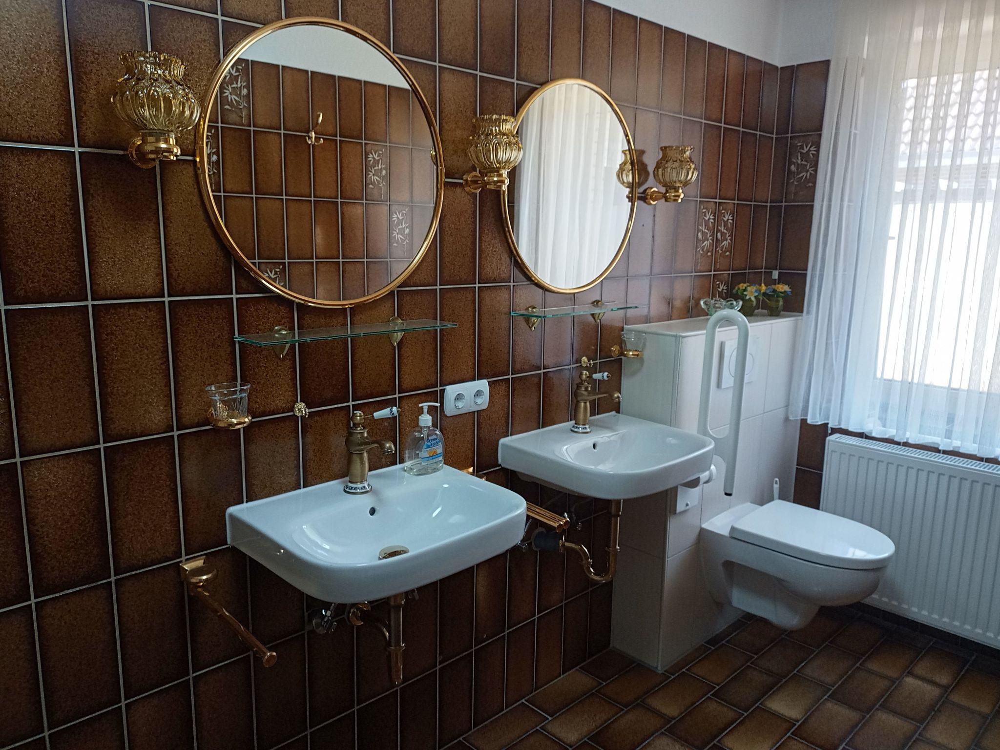 Die Ferienwohnung hat ein geräumiges, seniorengerecht eingerichtetes Bad mit direktem Zugang aus dem Schlafzimmer.