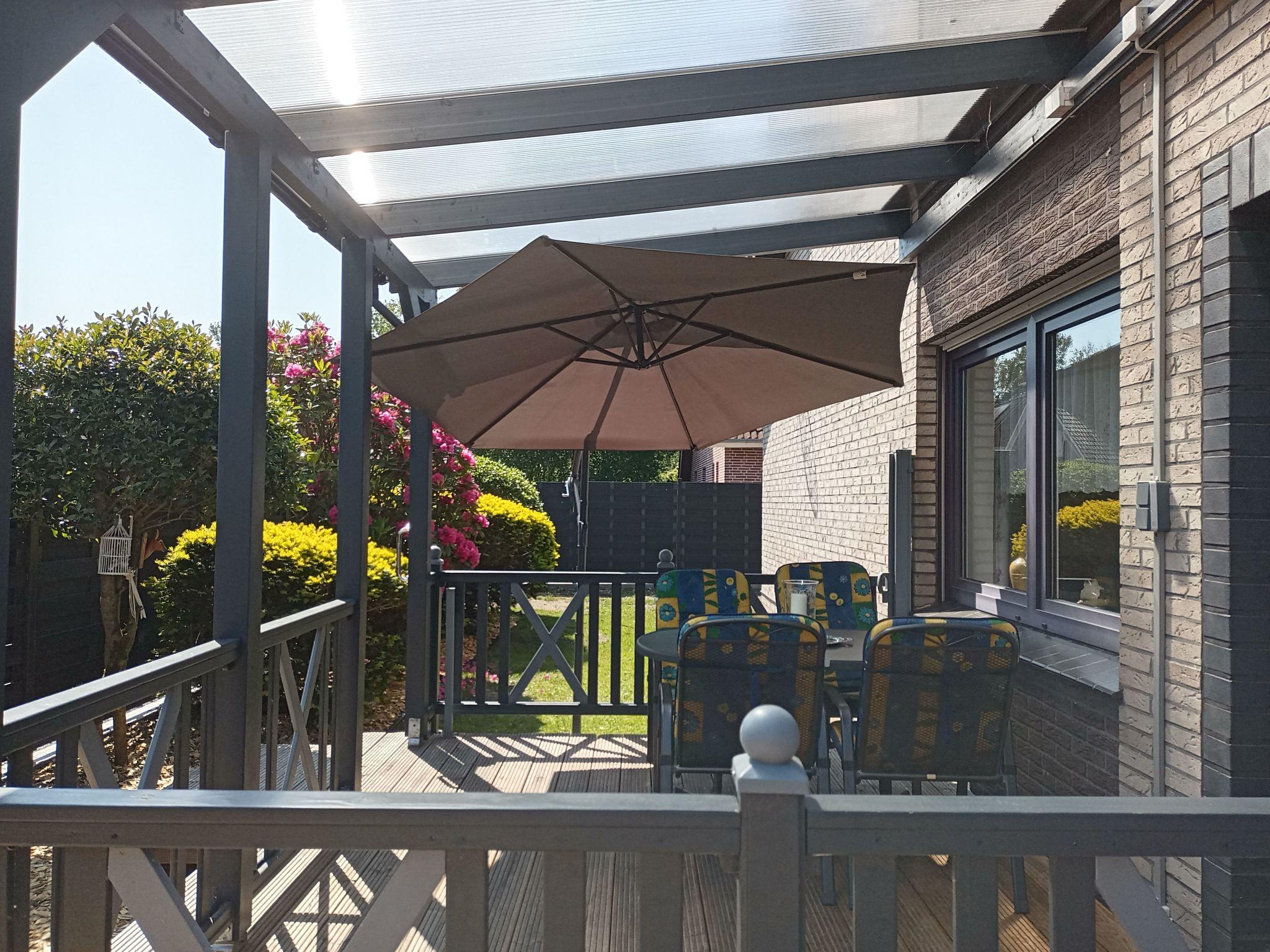 Der großzügige eigene Garten bietet Ihnen bis in die Abendstunden hinein ein schönes sonniges Plätzchen um Ihren Urlaub in vollen Zügen zu genießen. Absolutes Highlight ist dabei die überdachte Terrasse, die ausreichend Platz und Sitzgelegenheiten für vier Personen bietet. Durch die mobilen Seitenwände ist hier auch an kalten oder windigeren Tag ein gemütliches Plätzchen.