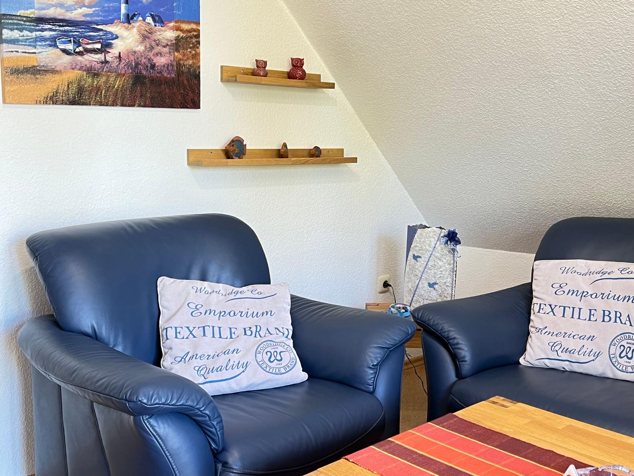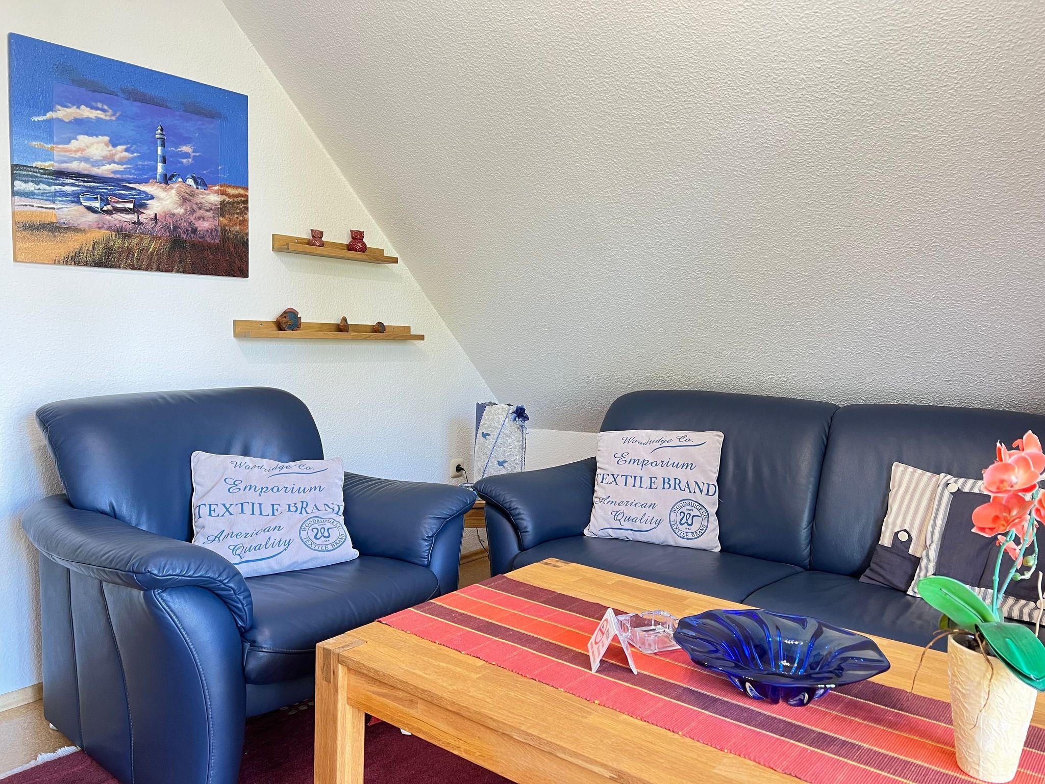 Die Wohnung ist ausgestattet mit einem großzügigen Schlafzimmer im Landhausstil mit Doppelbett, einer Küche inkl. allem was Sie zum täglichen Leben brauchen, einem Bad mit Dusche und WC ( inkl. Waschmaschine ) einer Diele und einem großen Wohnzimmer mit Ledergarnitur, Fernsehecke ( LED-Flachbildschirm u. Blue ray Player , Digitalem Sat - Receiver und einer Stereo-Anlage sowie Smart TV Fernsehn ).