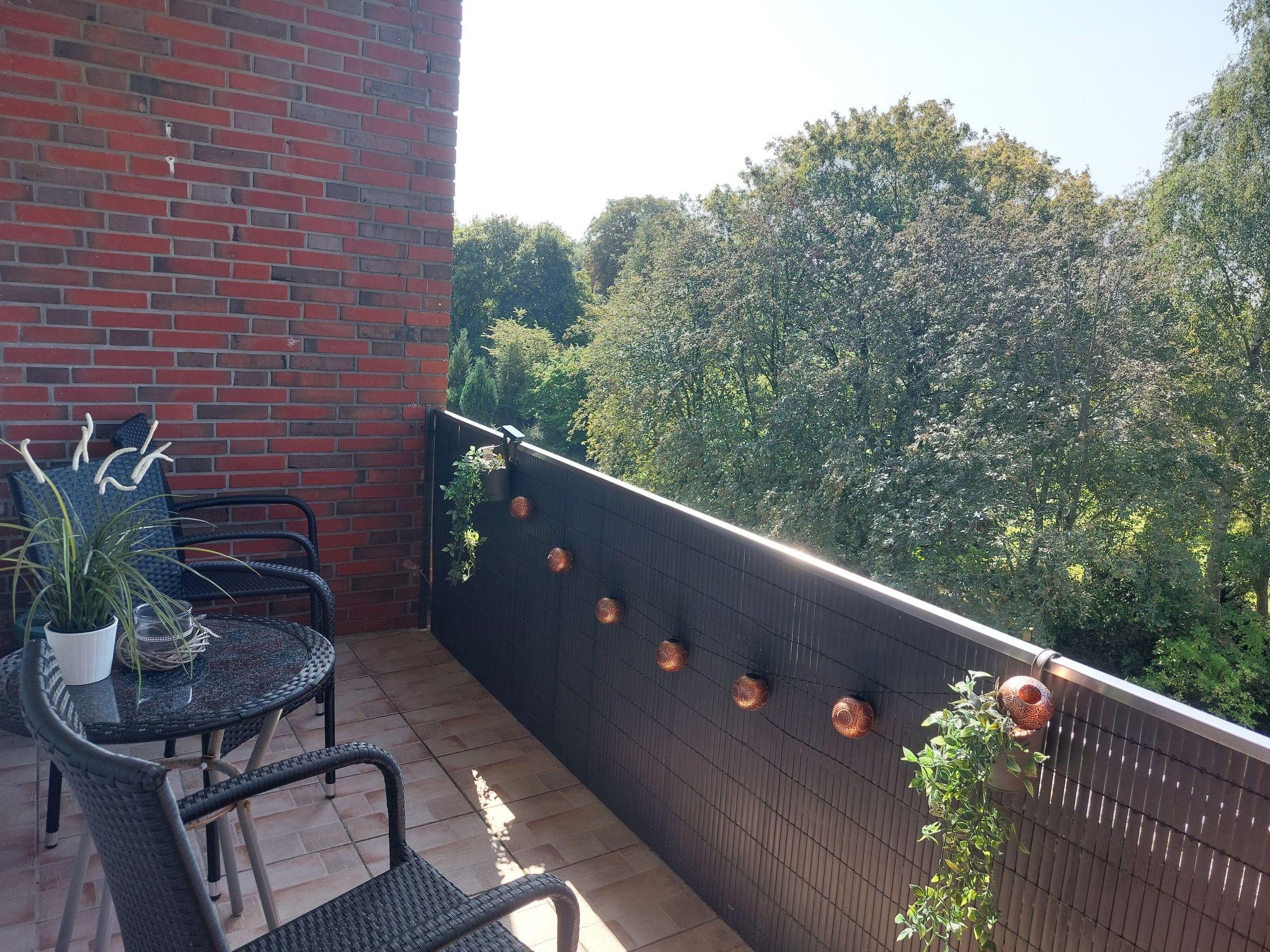 - Loggia mit Sitzmöglichkeit und Blick auf die Grünfläche