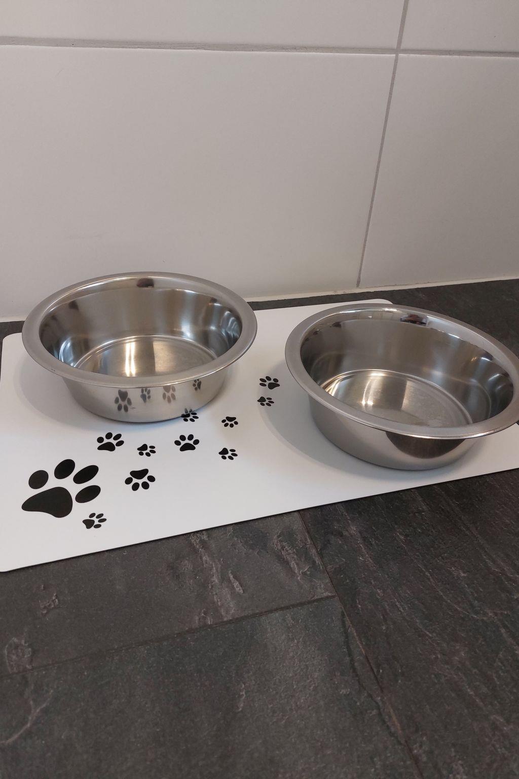 - Hundekorb (ohne Decke) und Hundenäpfe