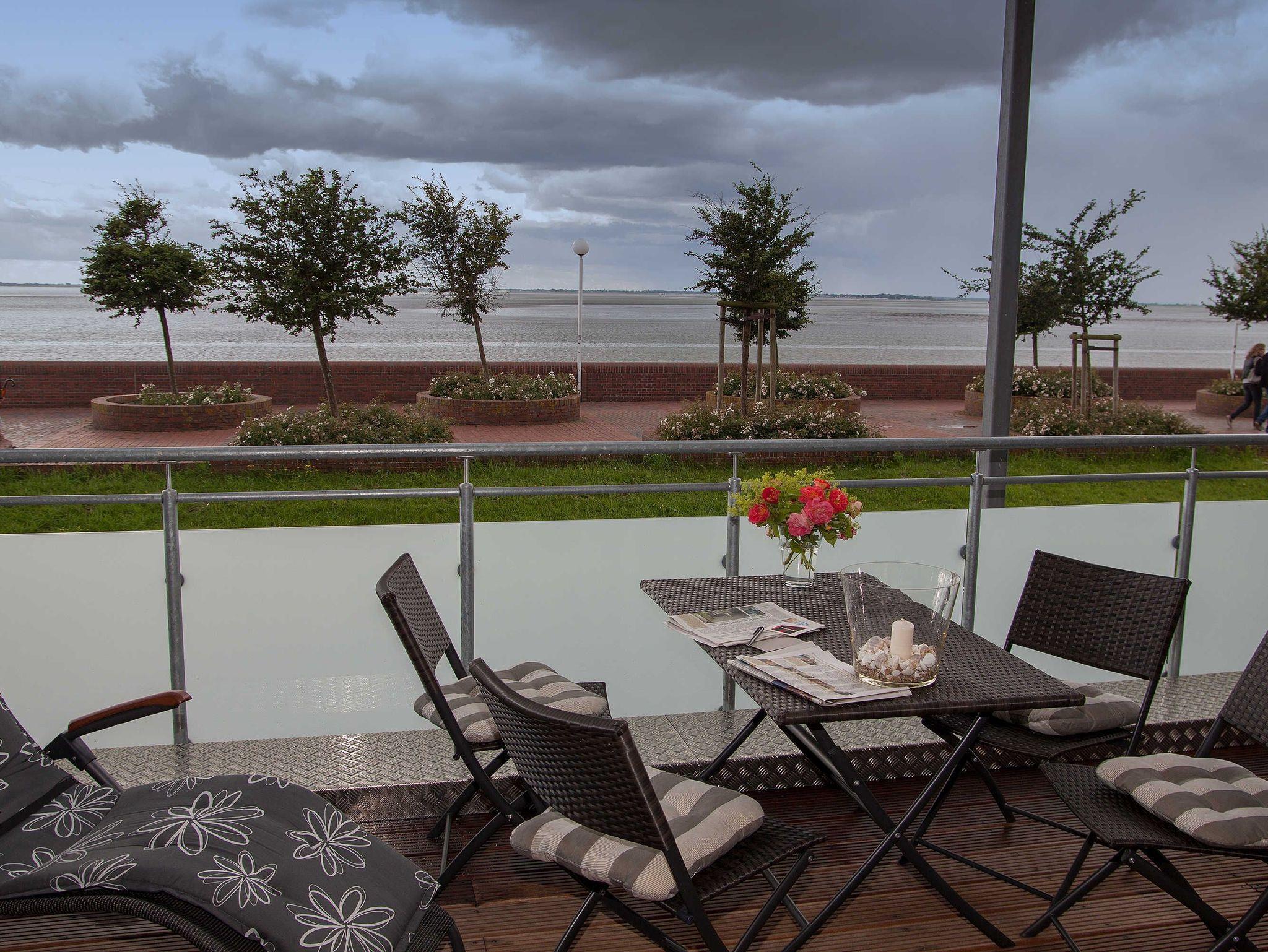 Moderne Ferienwohnung mit Meerblick und großem Südbalkon direkt an der Südstrandpromenade in Wilhelmshaven.