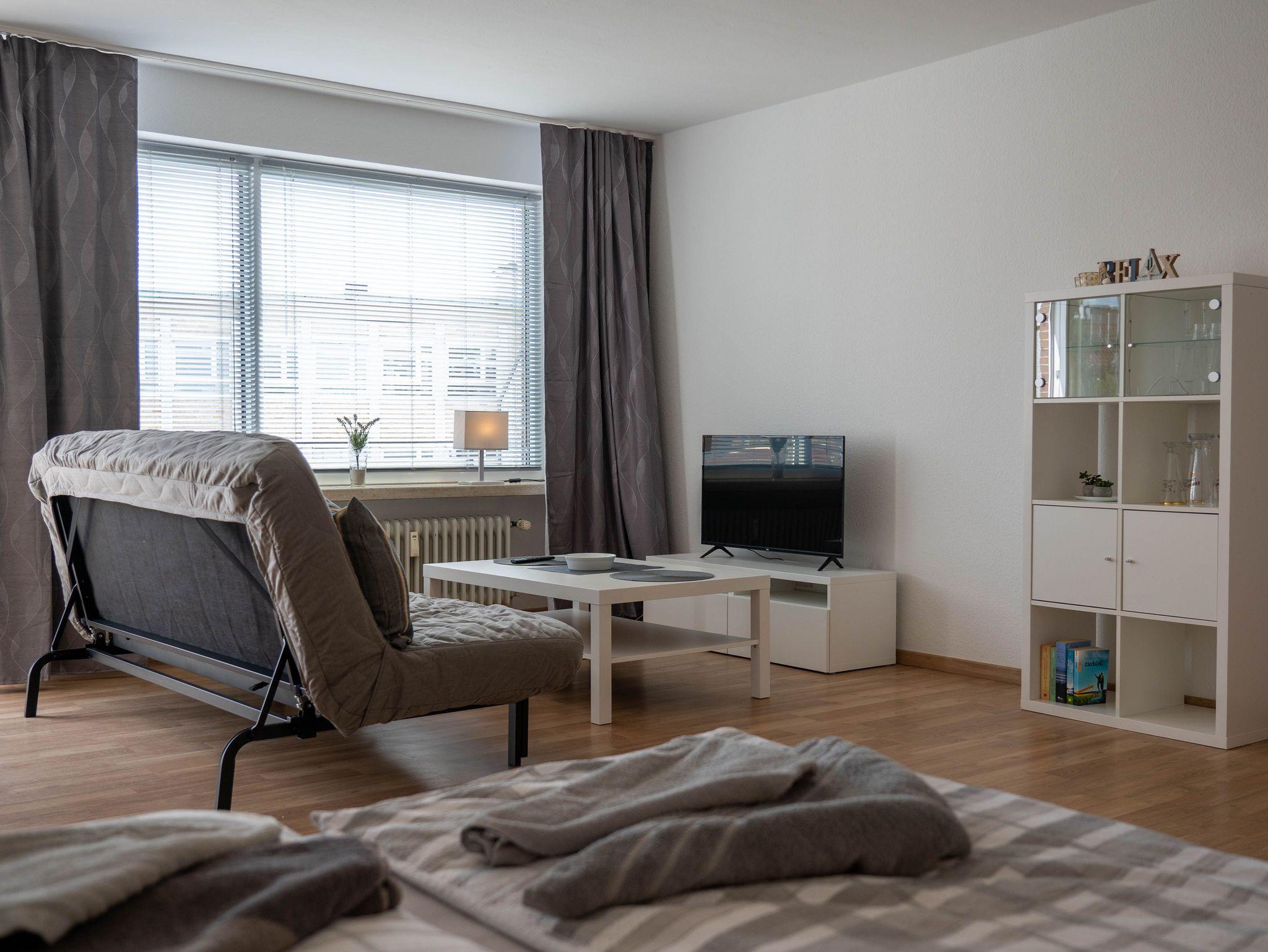 Modernes City-Apartment mit Süd-Balkon, voll ausgestatteter Küche und Smart-TV im Herzen Wilhelmshavens.