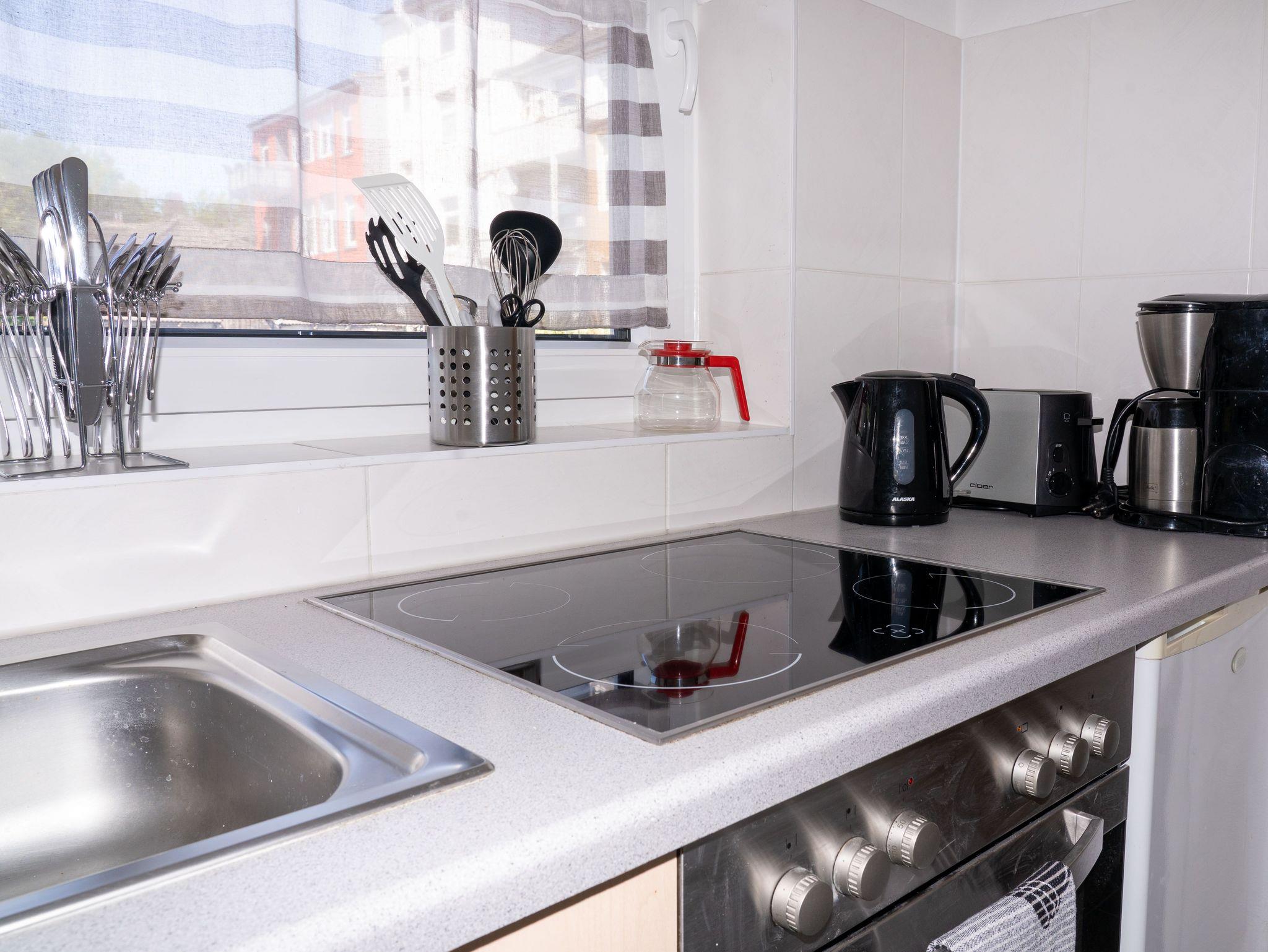 Zur Hafenpromenade sind es etwa 20 Gehminuten, Einkaufsmöglichkeiten sowie Imbiss und Restaurants sind direkt vor der Tür.