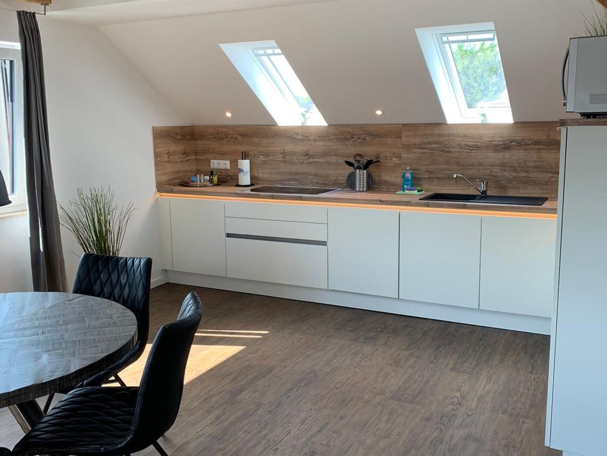 Die Ferienwohnung bietet maximal 5 Schlafplätze an. Mitreisende Fellnasen (Hunde) sind auf Rückspreche gegen eine Gebühr willkommen. Die offene Küche ist voll ausgestattet und läd zum kulinarischen Zaubern ein.
