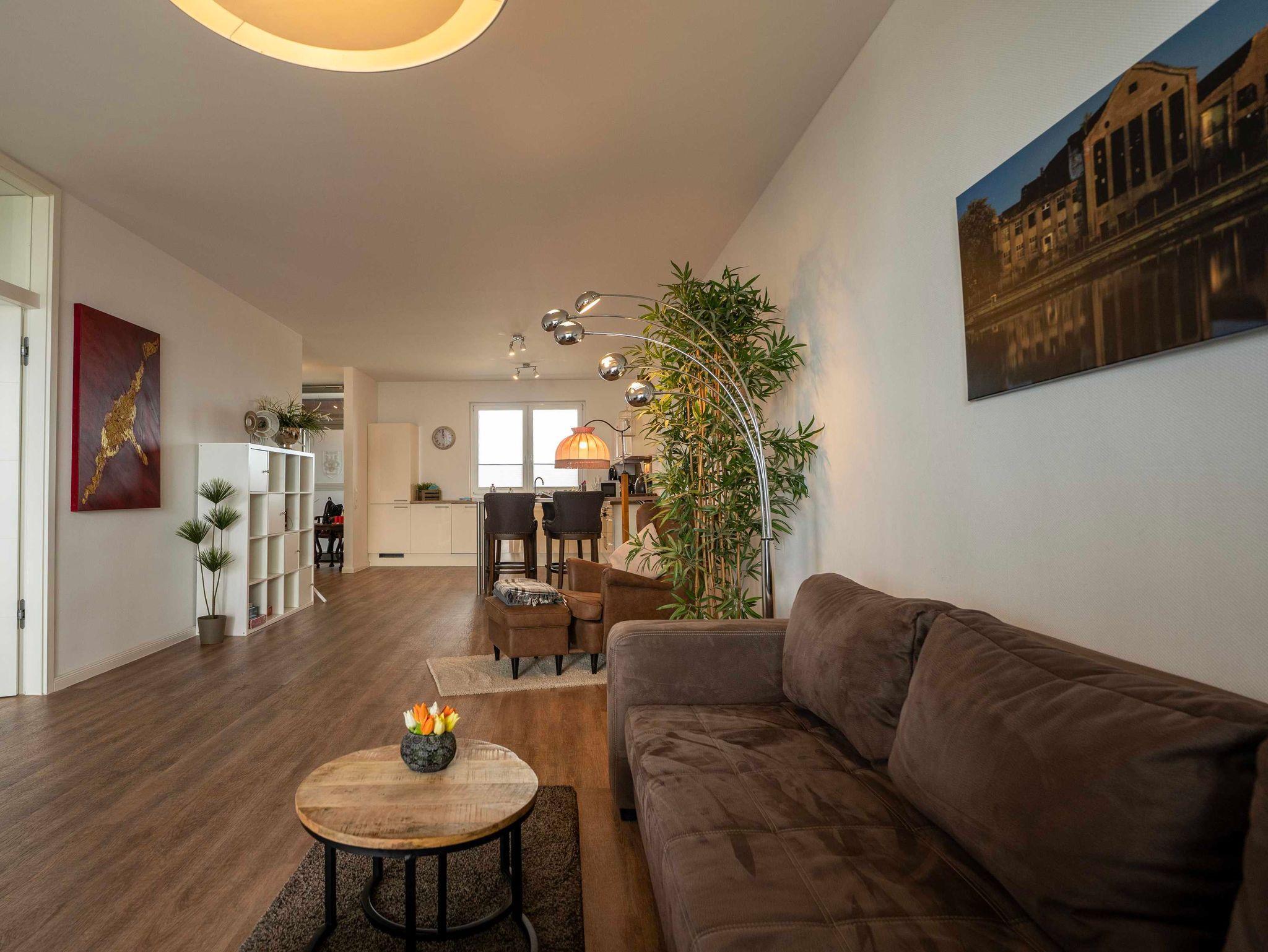 Modern ausgestattete Ferienwohnung auf einer Ebene, barrierefrei, ohne Treppen mit einem Schlafzimmer, offener Wohn-Essbereich inkl. Pkw-Stellplatz in der Tiefgarage, WLAN und Handtüchern und Bettwäsche.