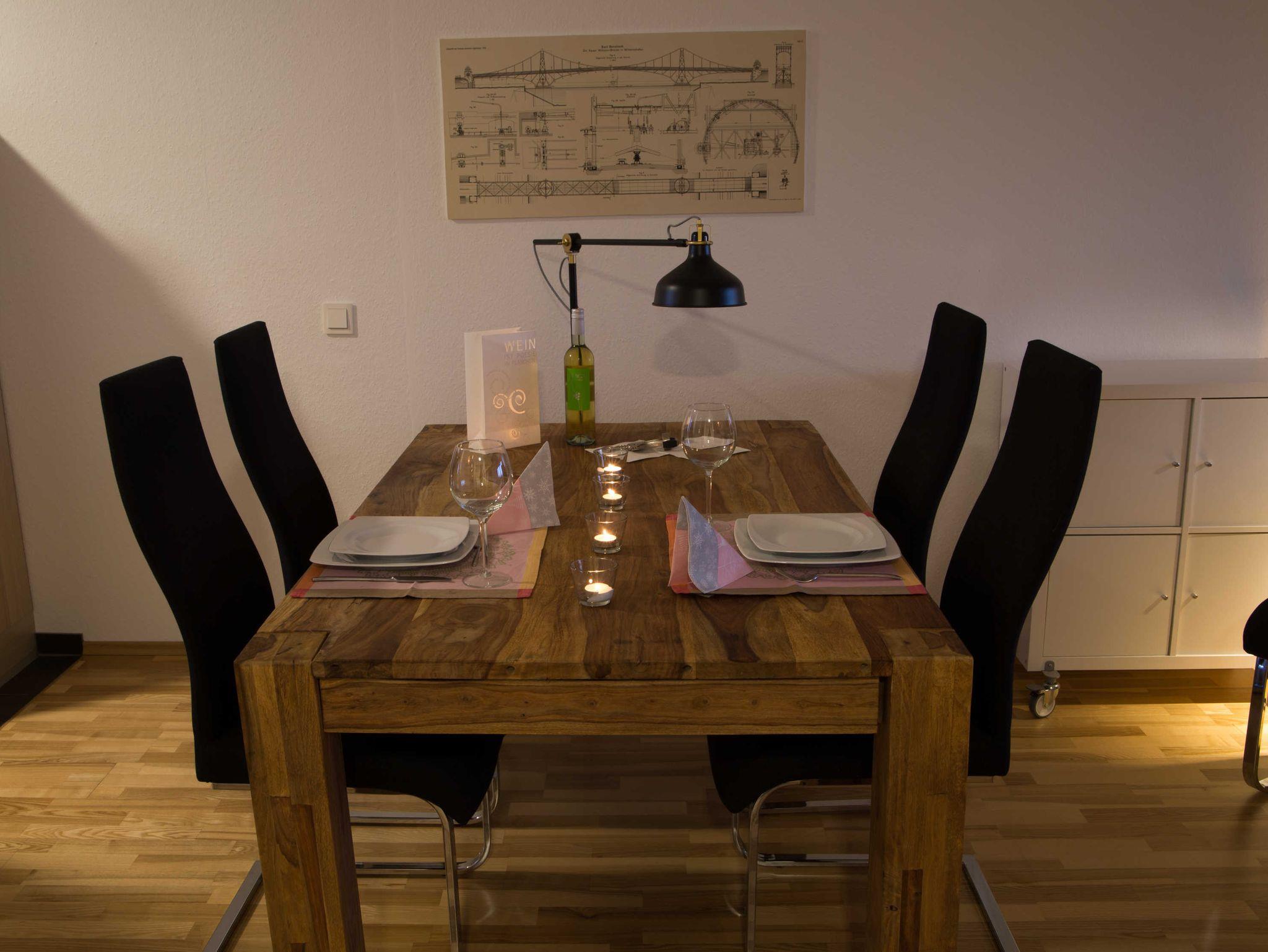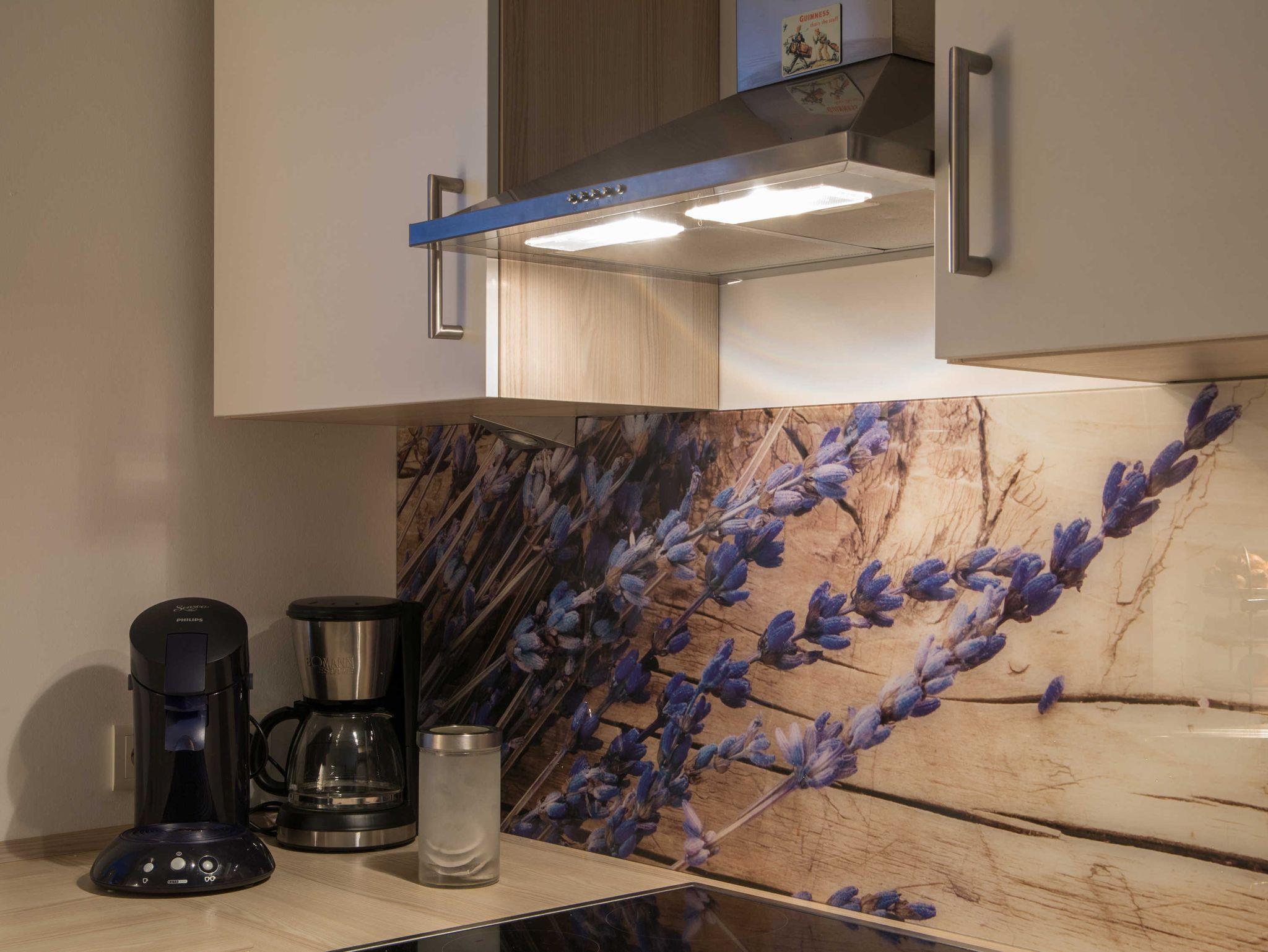 Die 65qm große Ferienwohnung ist für 1-2 Personen ausgelegt. Sie verfügt über einen großen, offenen Wohn-, und Kochbereich, einem Schlafzimmer, einem Bad und einem Flur. Das moderne Bad verfügt über ein Wannenbad, das mit einem Griff in eine komfortable Dusche umgewandelt werden kann. Die Küche ist umfangreich ausgestattet. Über den Geschirrspüler, einer Senseo-Maschine für die Kaffeezubereitung, einer Mikrowelle, einem Wasserkocher, dem Ceranfeld-Herd mit Backofen bis hin zum Kühlschrank mit Eisfach ist alles vorhanden. Ein moderner Fernseher lädt zum Verweilen auf dem Sofa ein. Eine kleine Musikanlage im Bad sowie im Schlafzimmer geben Ihnen die Möglichkeit Musikgenuß auch in diesen Räumen zu genießen. Das Schlafzimmer verfügt über ein großes Doppelbett.
