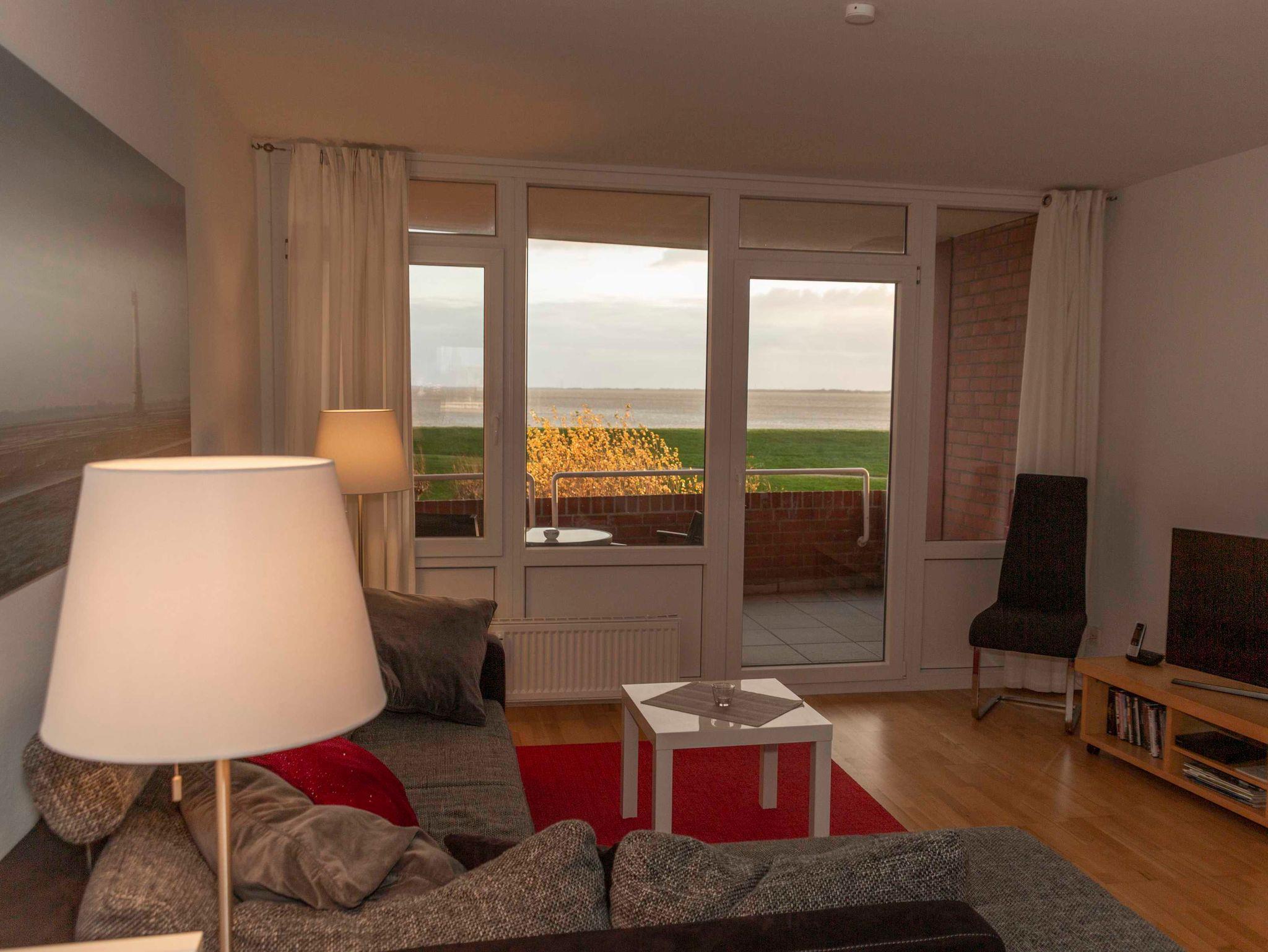Moderne Ferienwohnung mit Meerblick direkt am Deich in Wilhelmshaven, ideal für erholsame Tage zu zweit.