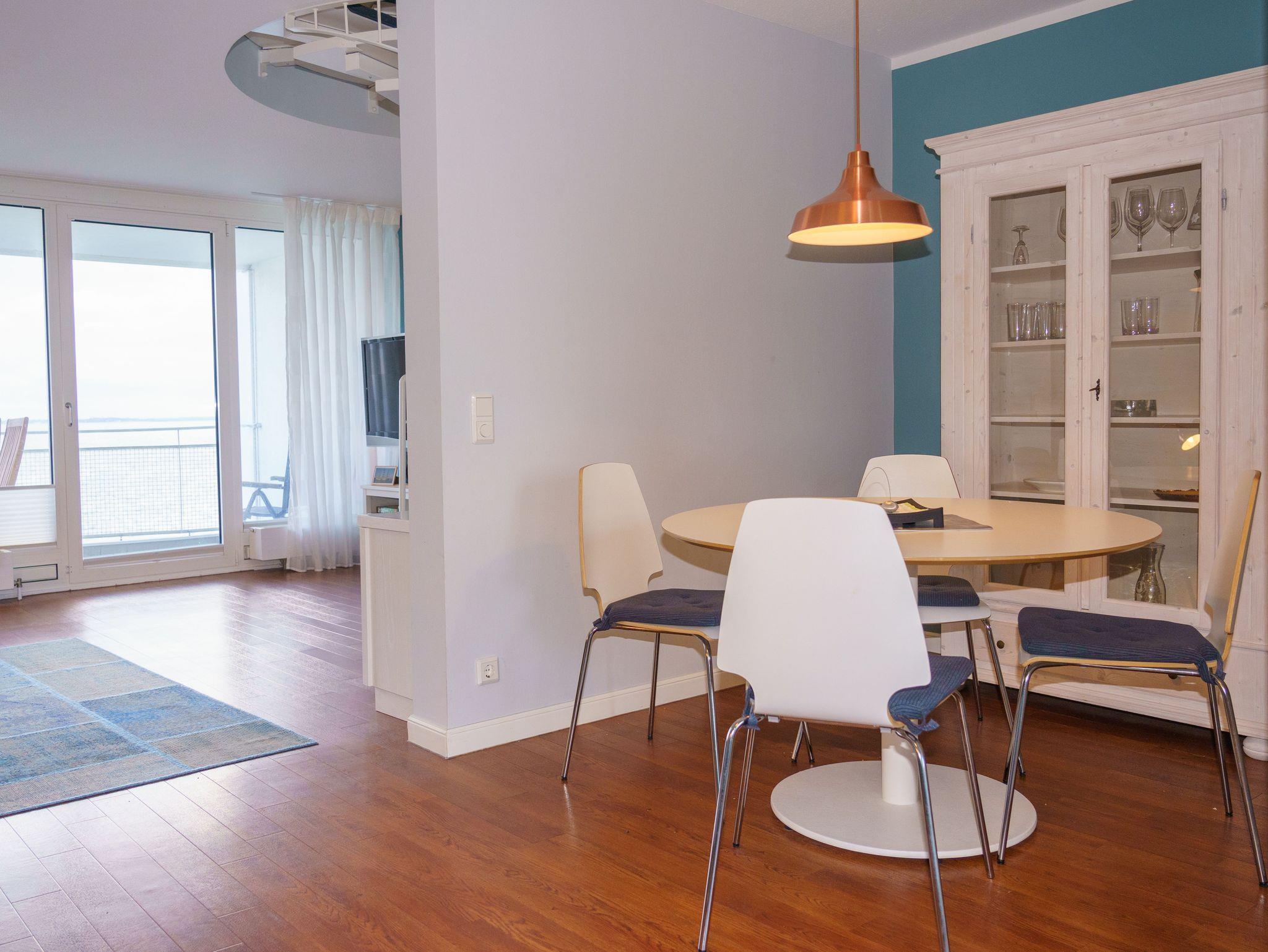 Entspannen Sie sich in dieser gemütlich eingerichteten Maisonette-Ferienwohnung, die im Helgolandhaus im fünften Stock zu finden ist.