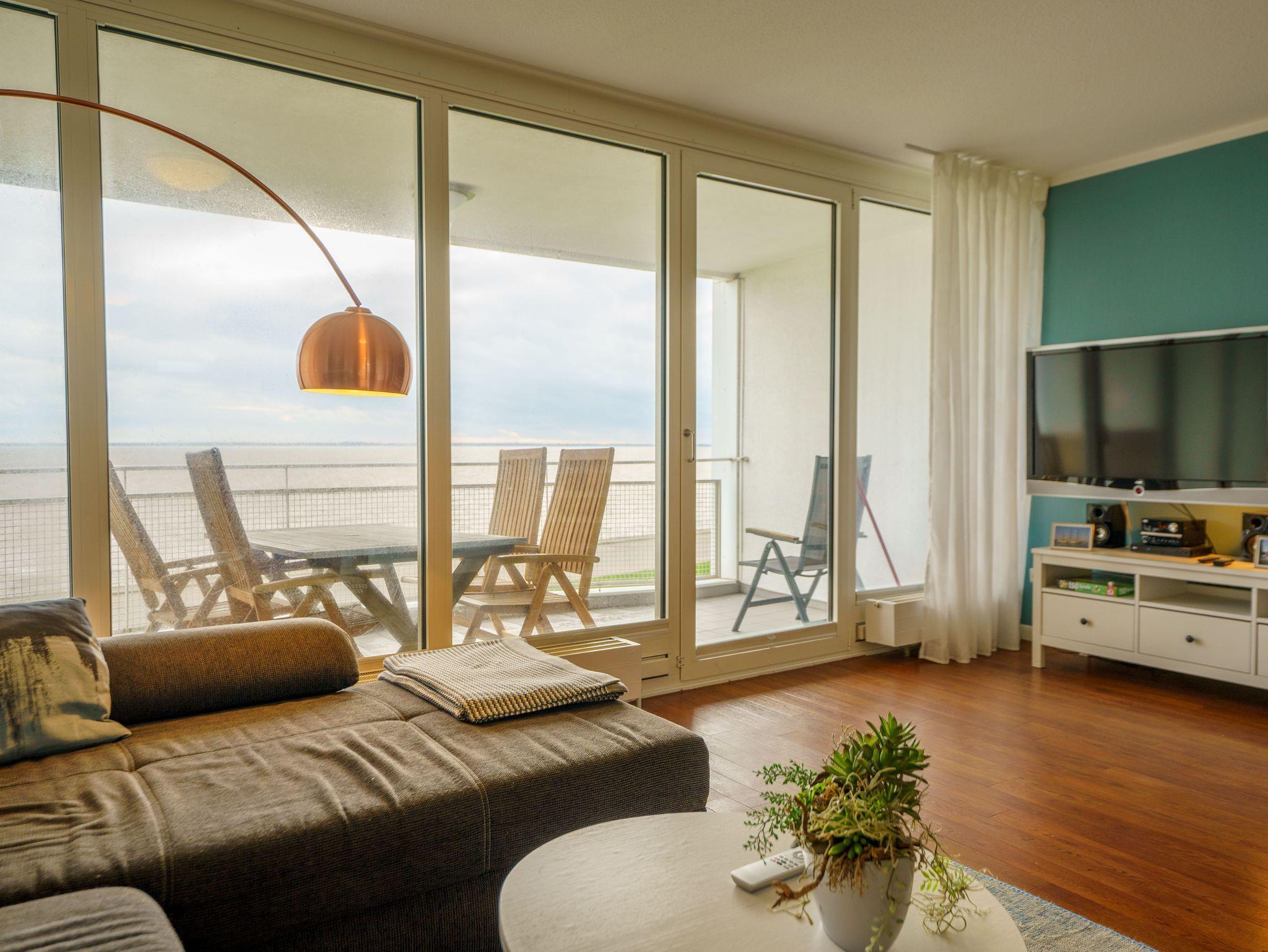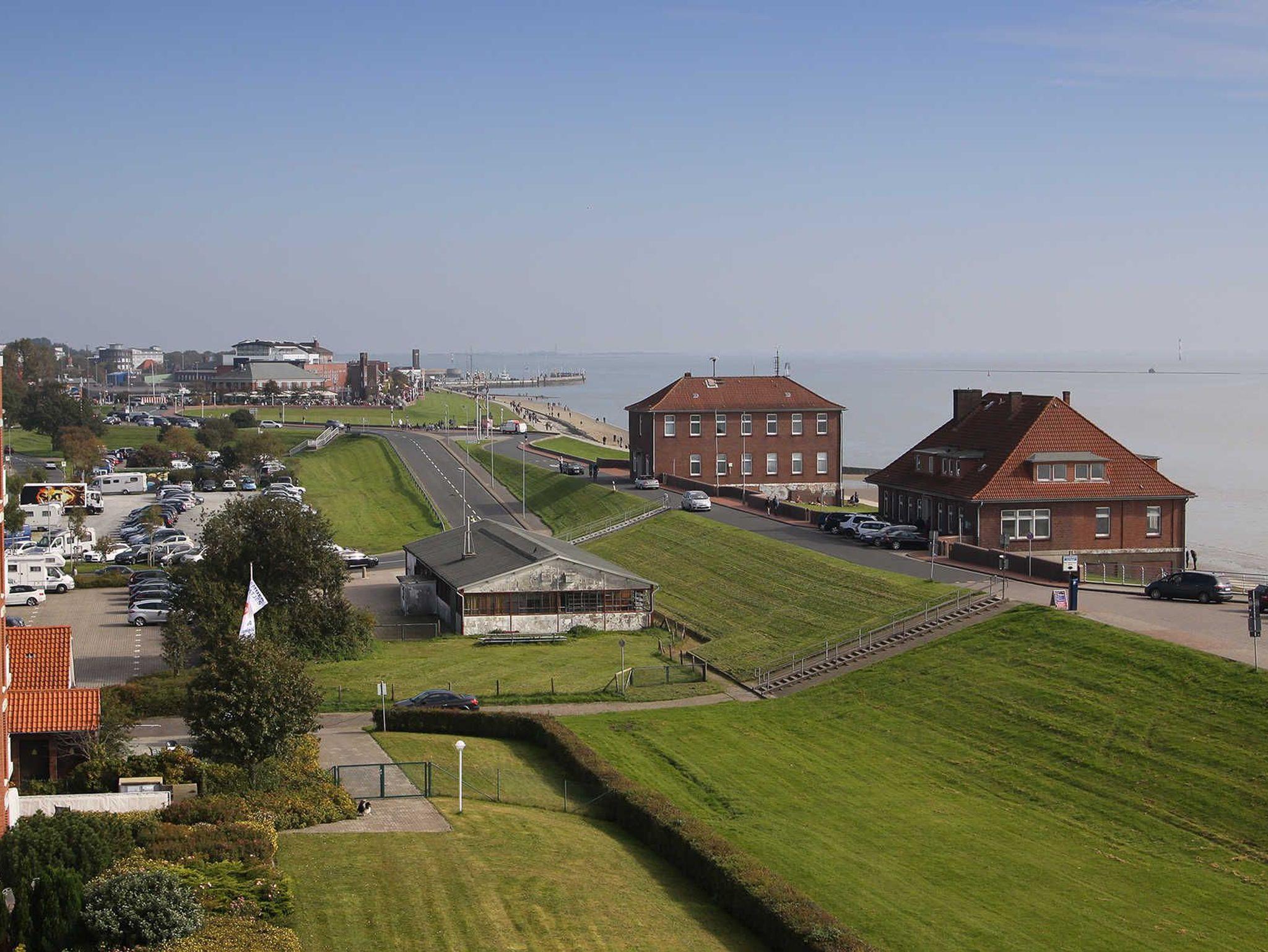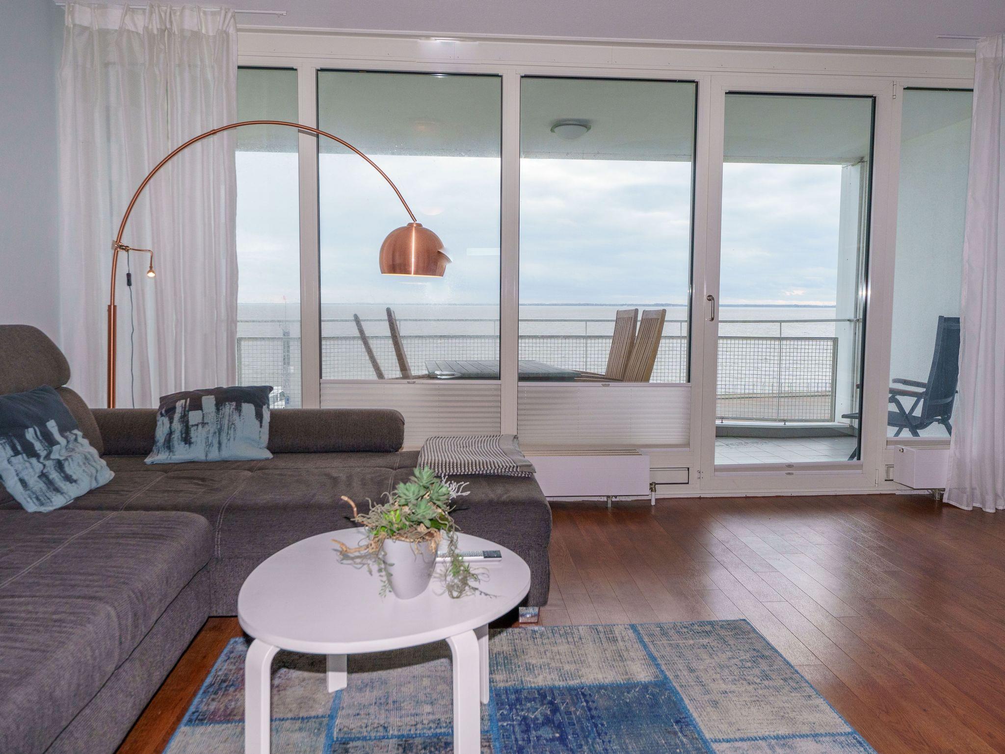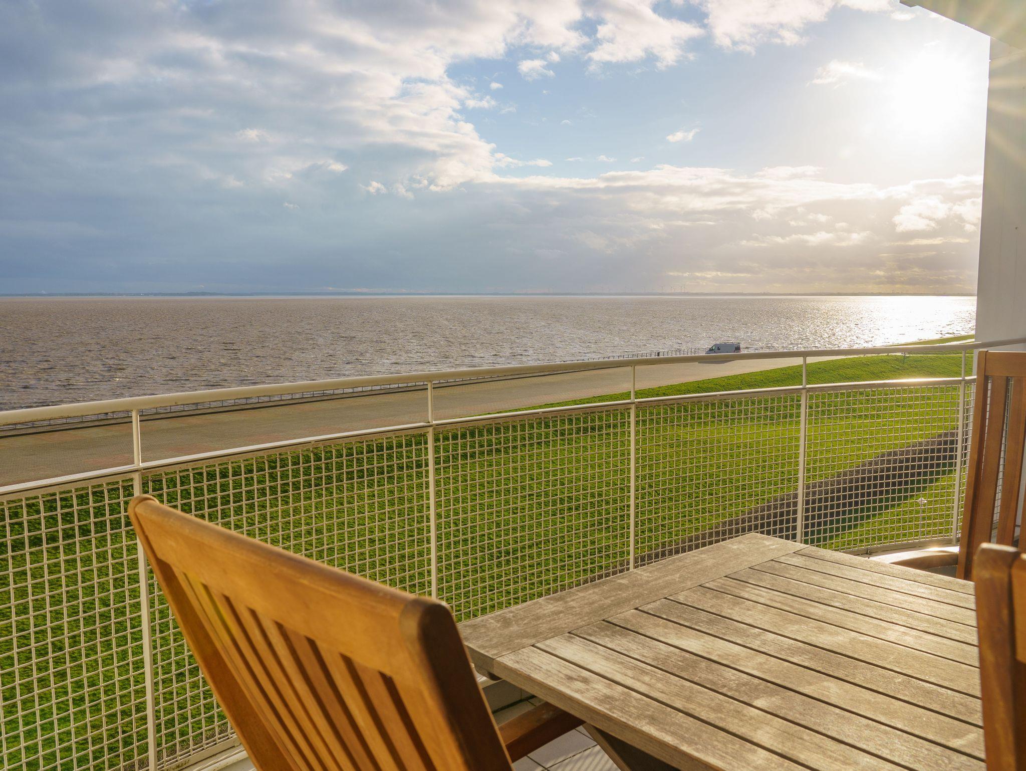 Genießen Sie den atemberaubenden Meerblick von dieser modernen Maisonette-Ferienwohnung am Deich in Wilhelmshaven.