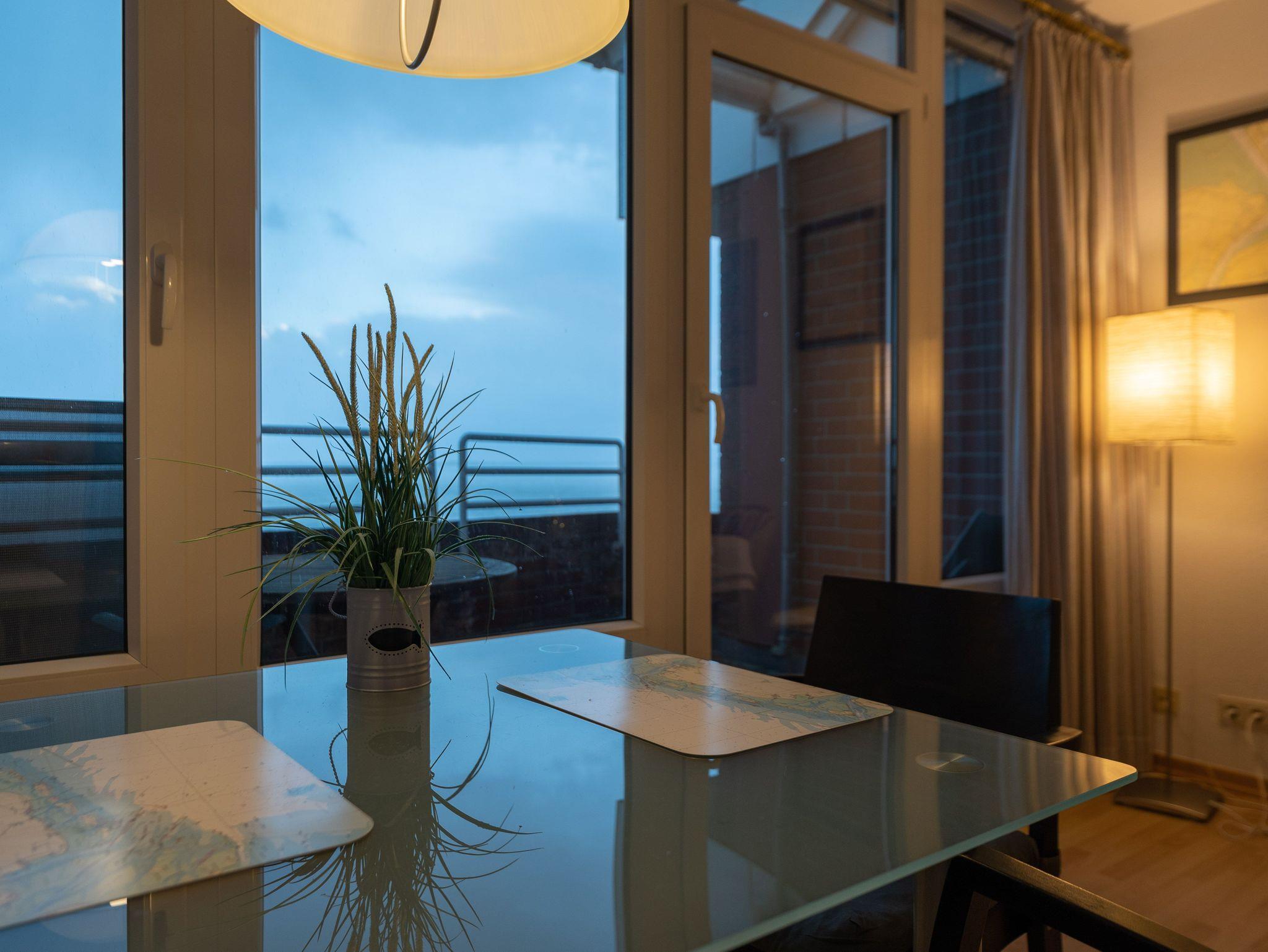 Moderne Ferienwohnung mit Panoramablick auf die Nordsee und den Hafen in Wilhelmshaven.