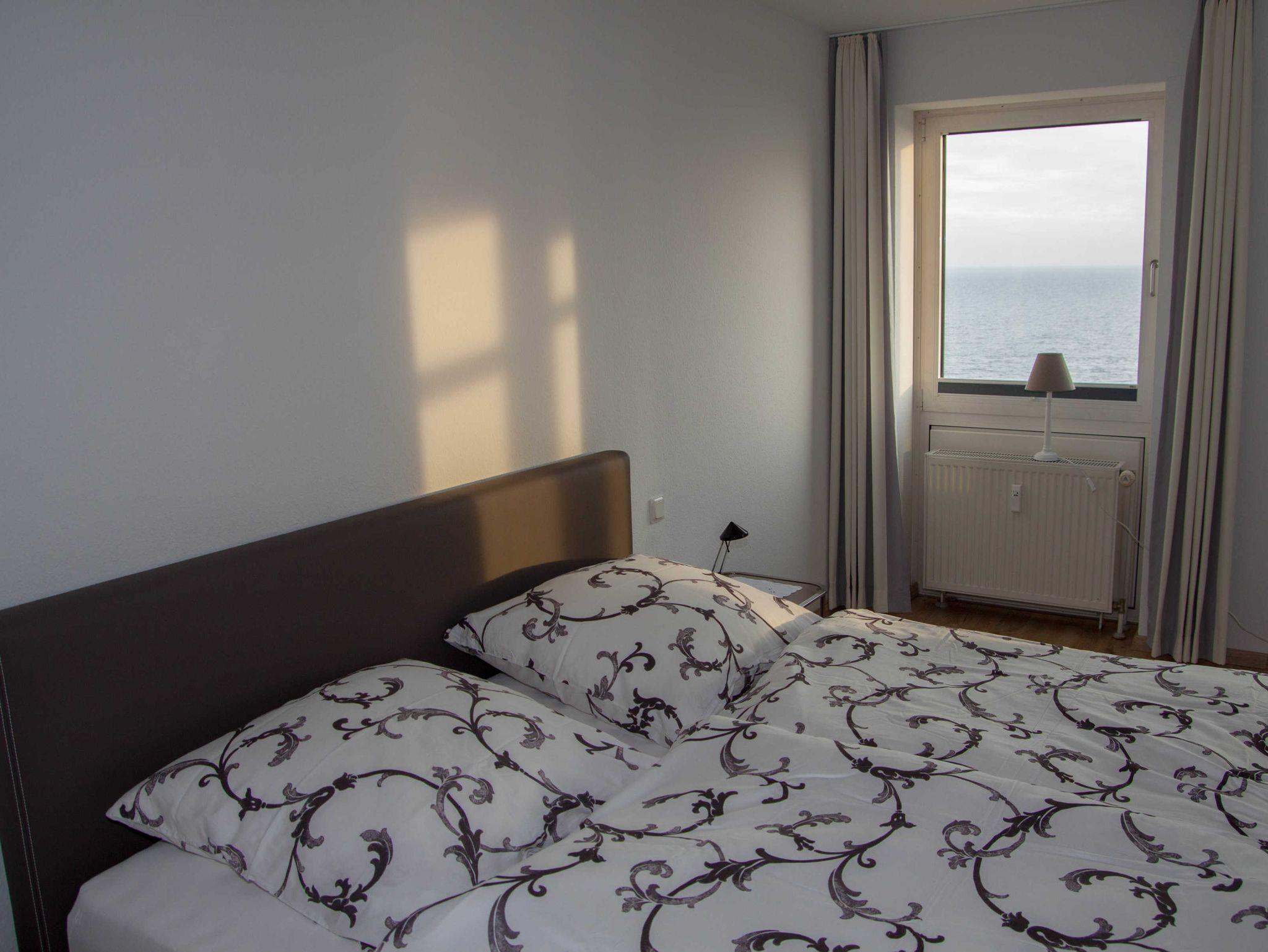 Das schön ausgestattete Schlafzimmer mit Blick auf die Nordsee, sowie das moderne Bad mit großzügiger Dusche und einer kleinen Waschmaschine lassen den Aufenthalt zum Urlaubserlebnis werden.
