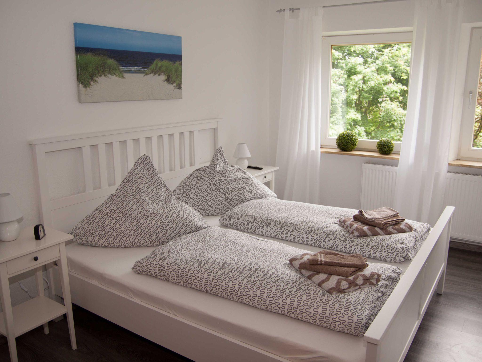 Ein gemütliches Schlafzimmer mit einem Doppelbett sowie zwei weitere Schlafzimmer mit je einem weiteren Bett, gewähren genügend Raum für die Traumwelten. In allen Zimmern stehen Kleiderschränke für Ihr Reisegepäck bereit. Die Wohnung ist ausgelegt für maximal vier Personen mit einem Kleinkind bis 3 Jahren. Kinderbetten werden vom Vermieter nicht zur Verfügung gestellt.