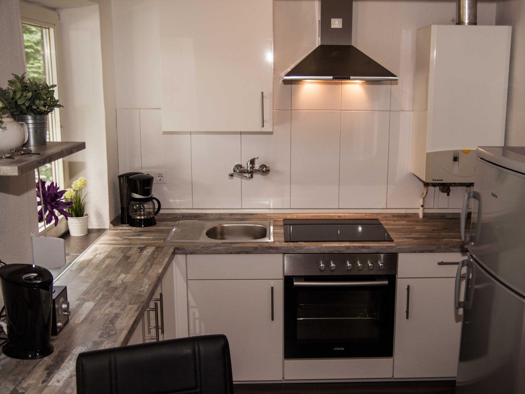 Die Küche ist komplett ausgestattet mit Kaffeemaschine, Wasserkocher, Kühl-Gefrierkombination, Ceranfeldherd . Ein Esstisch mit sehr bequemen Stühlen laden zum Speisen ein.