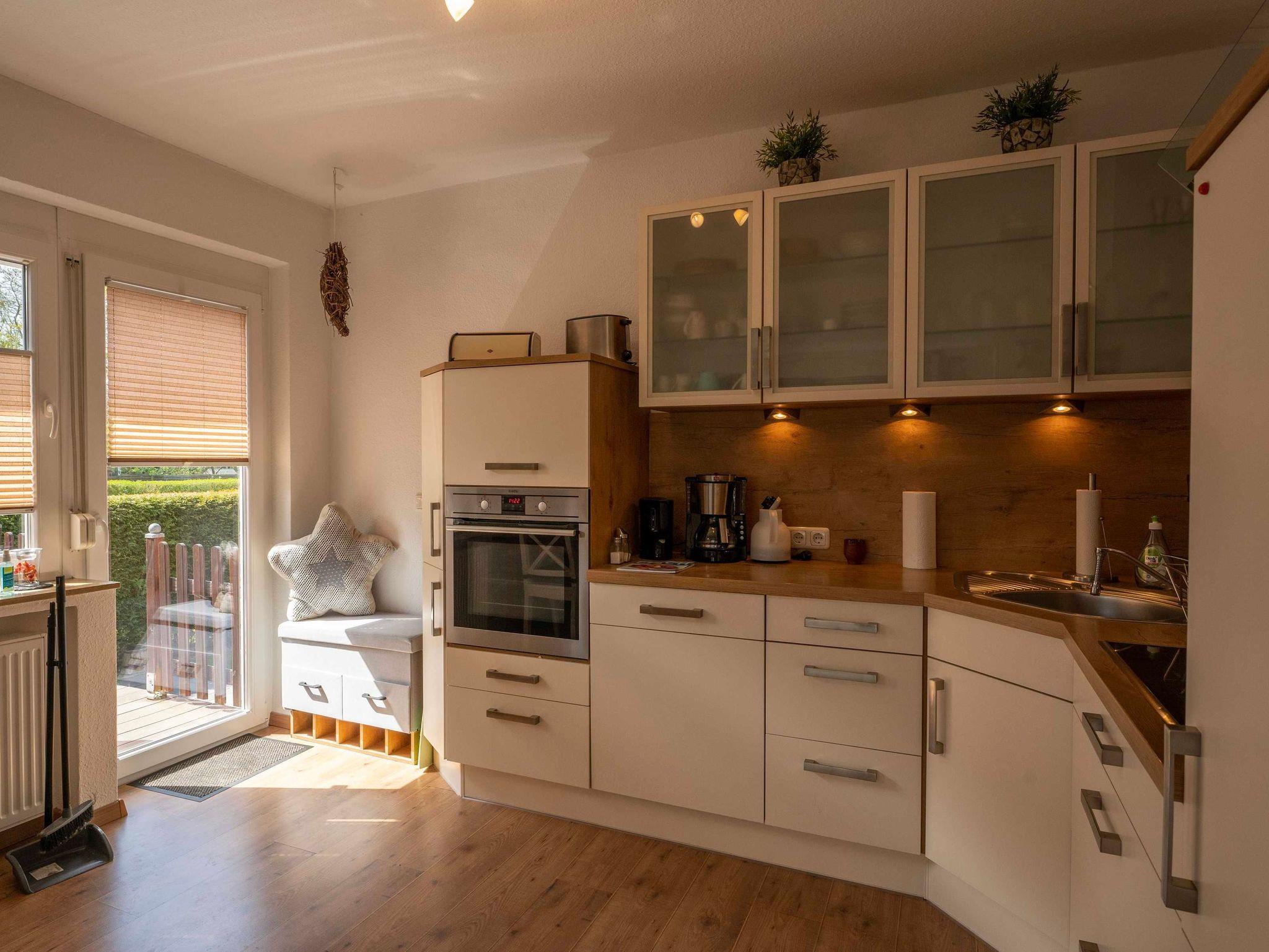 Das Erdgeschoss bietet eine moderne Küche mit offenem angrenzenden Wohnzimmer.