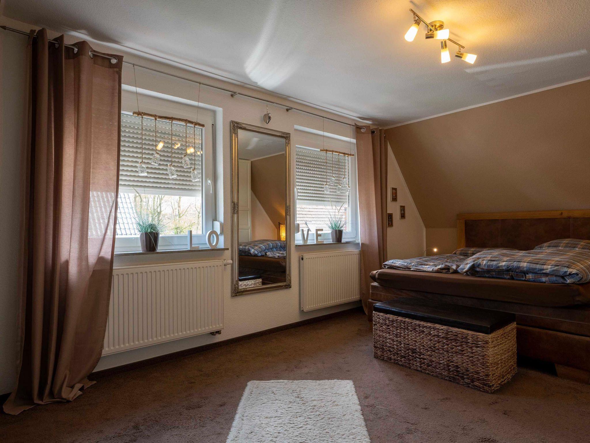 Die Küche ist mit Spülmaschine, Backofen,Toaster, Mikrowelle ausgestattet. Geschirr und dergleichen ist in ausreichenden Mengen vorhanden.Ausserdem befindet sich 1 Schlafzimmer mit einem Boxspringbett (140x200) mit einemzusätzlichen Fernseher sowie eine Gäste-WC im Ergeschoss.Im Obergeschoss finden Sie ein sehr geräumiges, gemütliches Schlafzimmer mit einem hochwertigen Boxspringbett (180x200)und einem extra Raum mit einem Bett von (160x200). Dieser Raum verfügt ist offen mit dem oberen Flur verbunden. Das Badezimmer ist mit Badewanne, einer Dusche und eingebautem Radio ausgestattet.