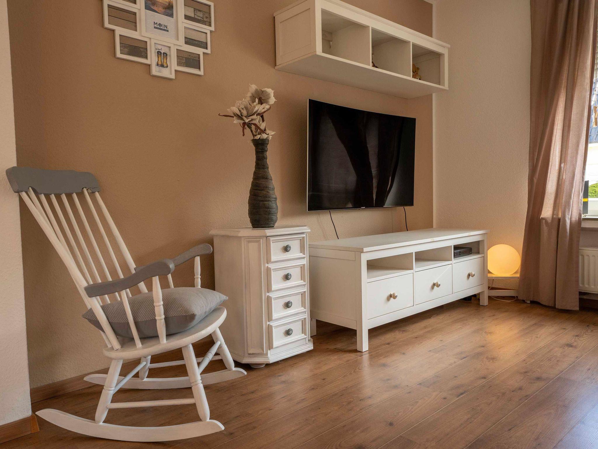 Wunderschönes Ferienhaus mit Außensitzmöglichkeit, aber ohne Garten, modern eingerichtet in warmen Farben mit einem großen Hauch Landhausstil.
