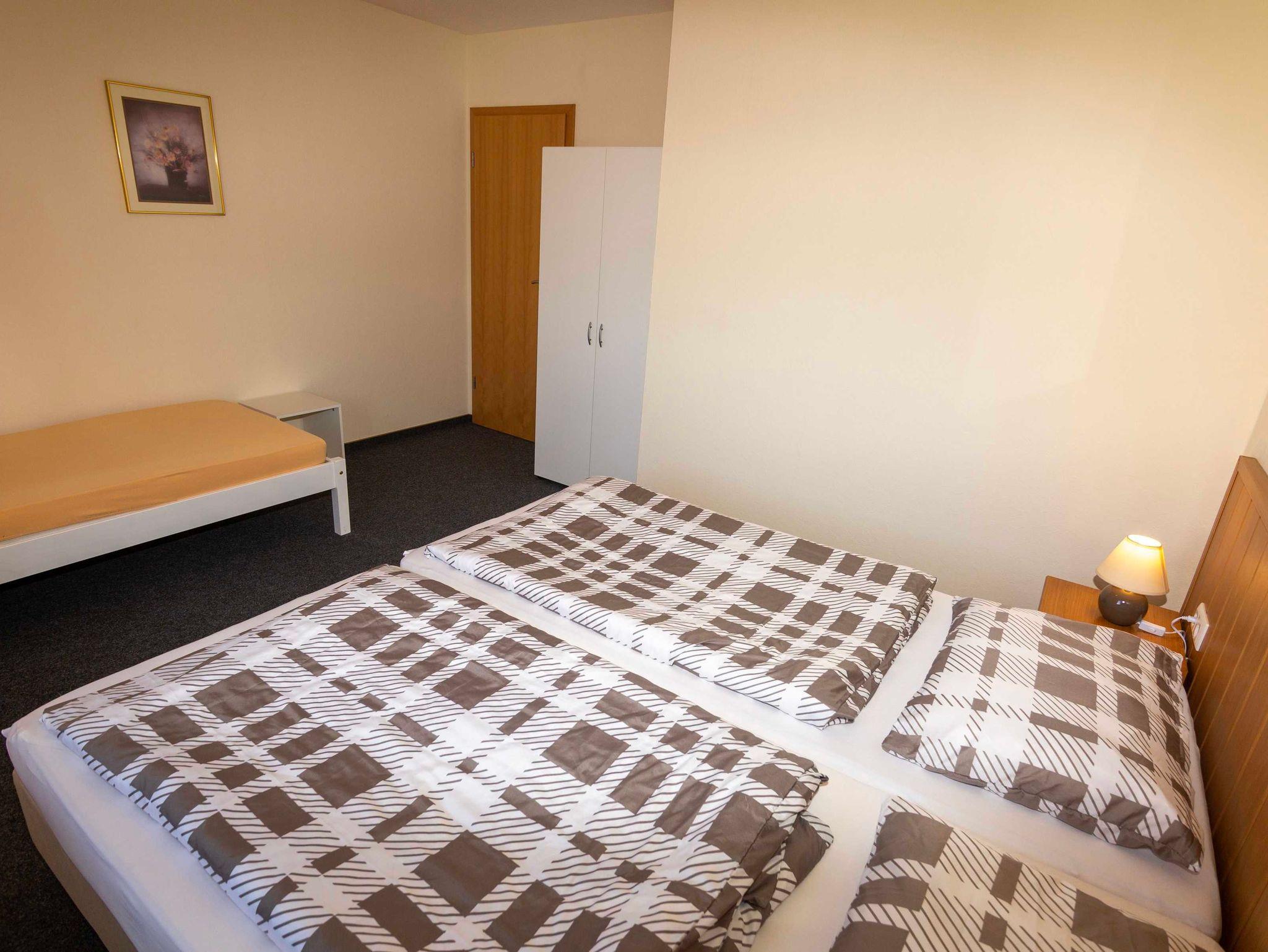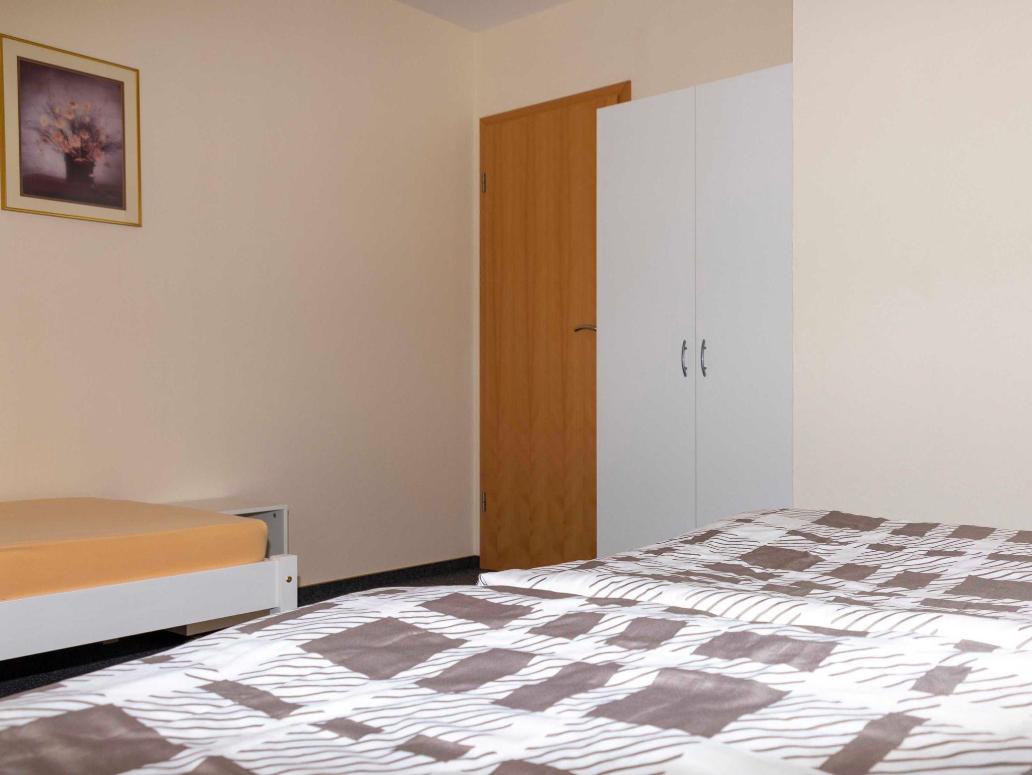 Die Wohnung verfügt über ein Schlafzimmer mit Doppelbett (2 getrennte Betten) und einem Einzelbett.