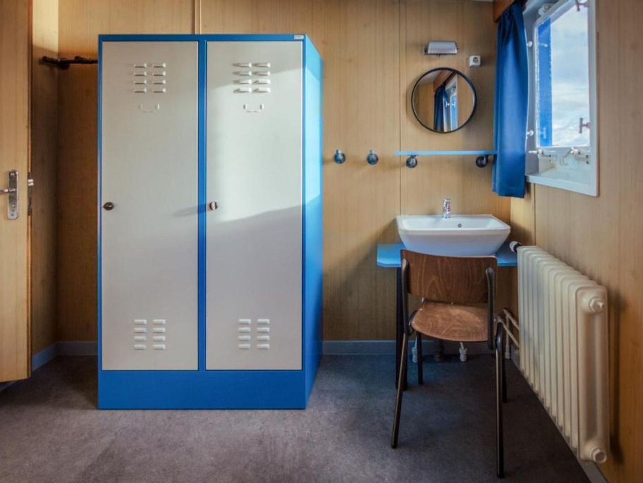 DIE KUSCHELIGE 2ER-KAJÜTE Etagenbett mit 2 Schlafplätzen à 90 × 200 cm // 2 Spinde // Garderobe Schreibtisch mit Stuhl // Waschtisch mit Ablagefläche und beleuchtetem Spiegel