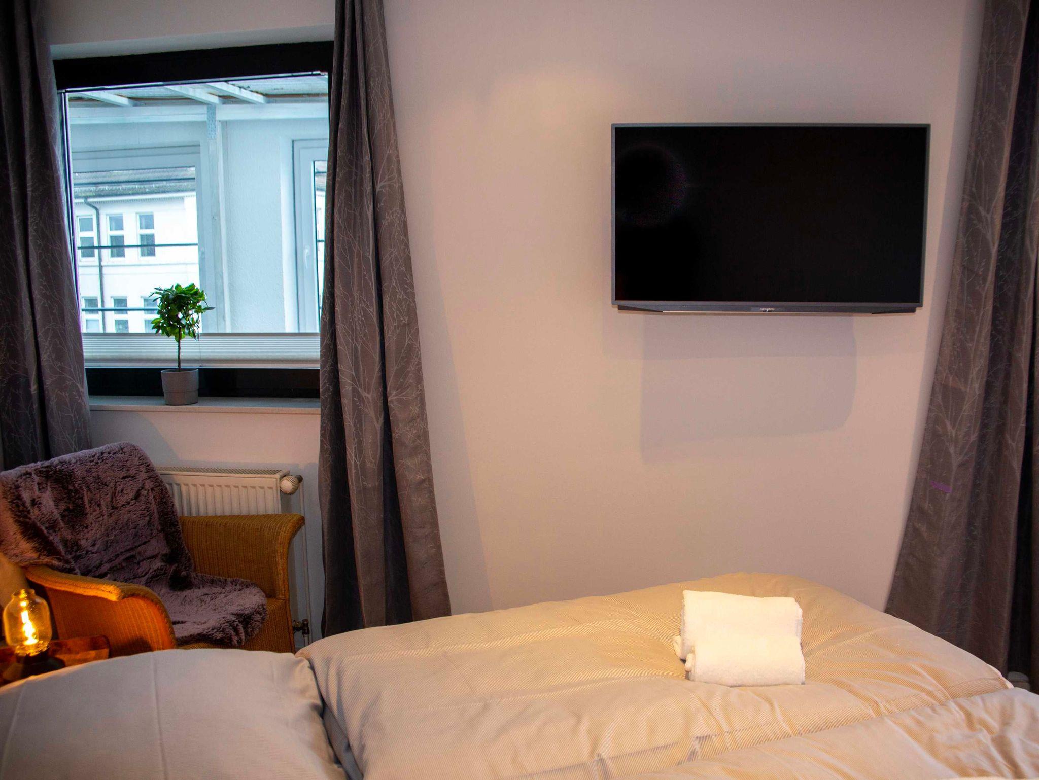 Kaiser-Wilhelm - Große Ferienwohnung mit vier Schlafzimmern, zwei Bädern und einem großen Balkon nach Süden und Osten ausgerichtet. Diese Wohnung bietet 7 Schlafplätze und ist für große Familien, Firmen hervorragend geeignet. Zentral in der Innenstadt an einem kleinen Park gelegen im obersten Stock - Abtauchen aus dem Alltag und dem Himmel ein Stück näher sein! Modern, mit schnellstem WLAN, Fernsehern in den Schlafzimmern und dem Wohnbereich, Netflix und Amazon-Prime-Nutzung ist für diese tolle Penthouse Wohnung selbstverständlich.