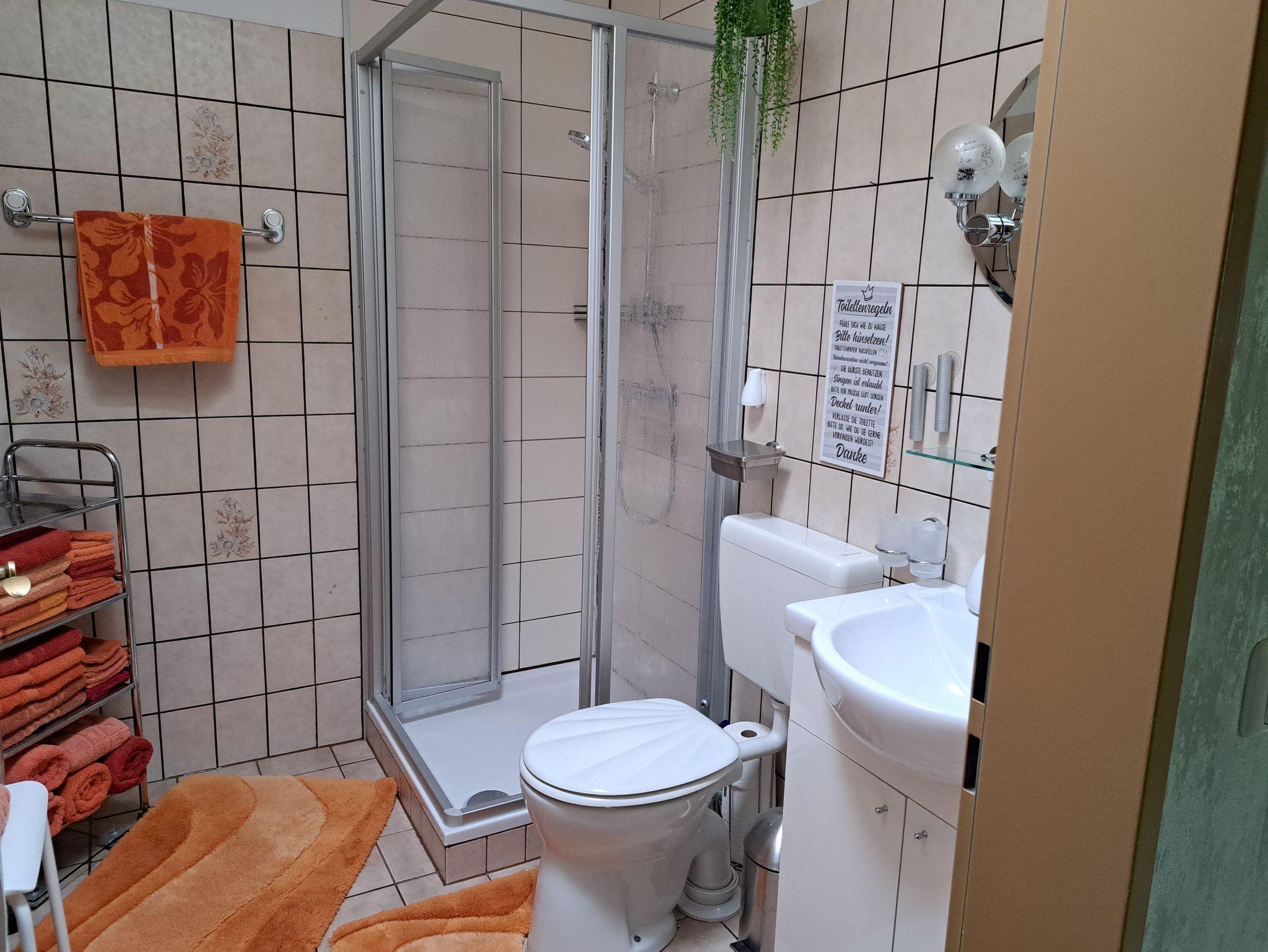 Das Tageslichtbad mit Dusche ist schön hell, ein Föhn liegt für Sie bereit.