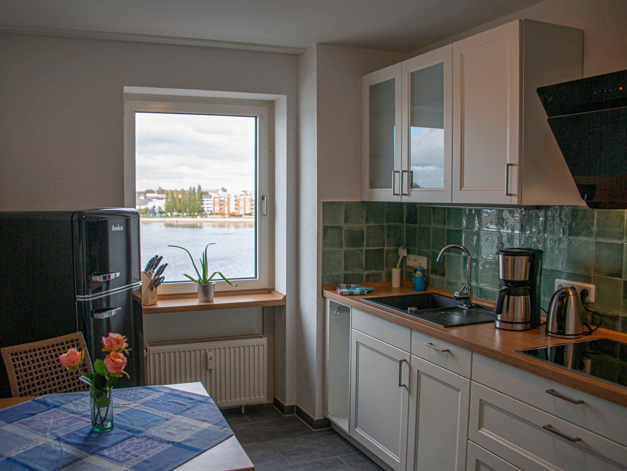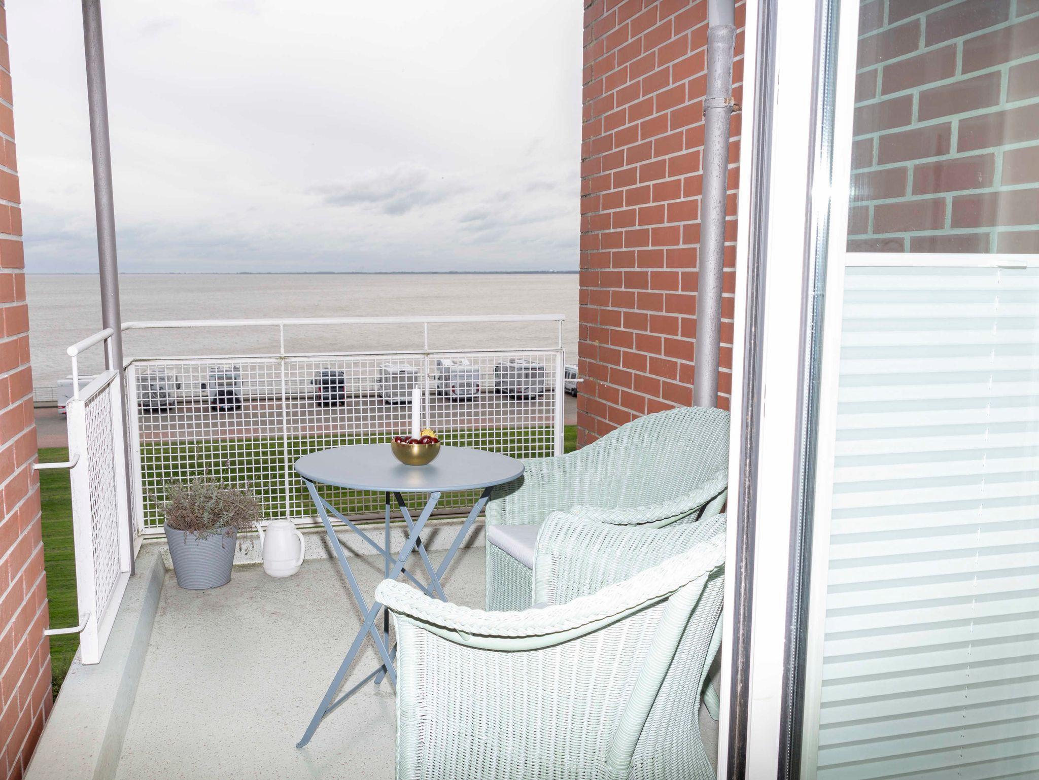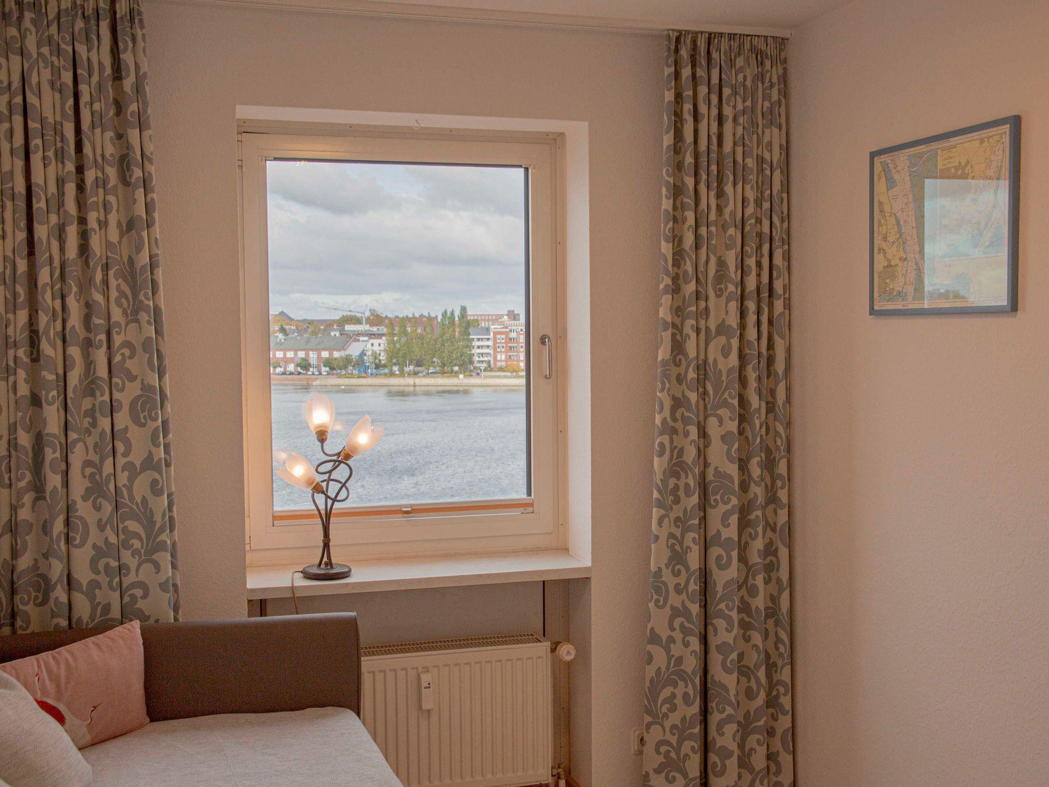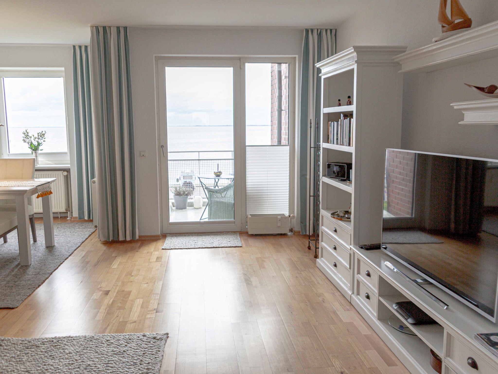 Moderne Ferienwohnung mit Meerblick und Top-Ausstattung im Helgolandhaus Avantgarde, direkt am Wasser in Wilhelmshaven.