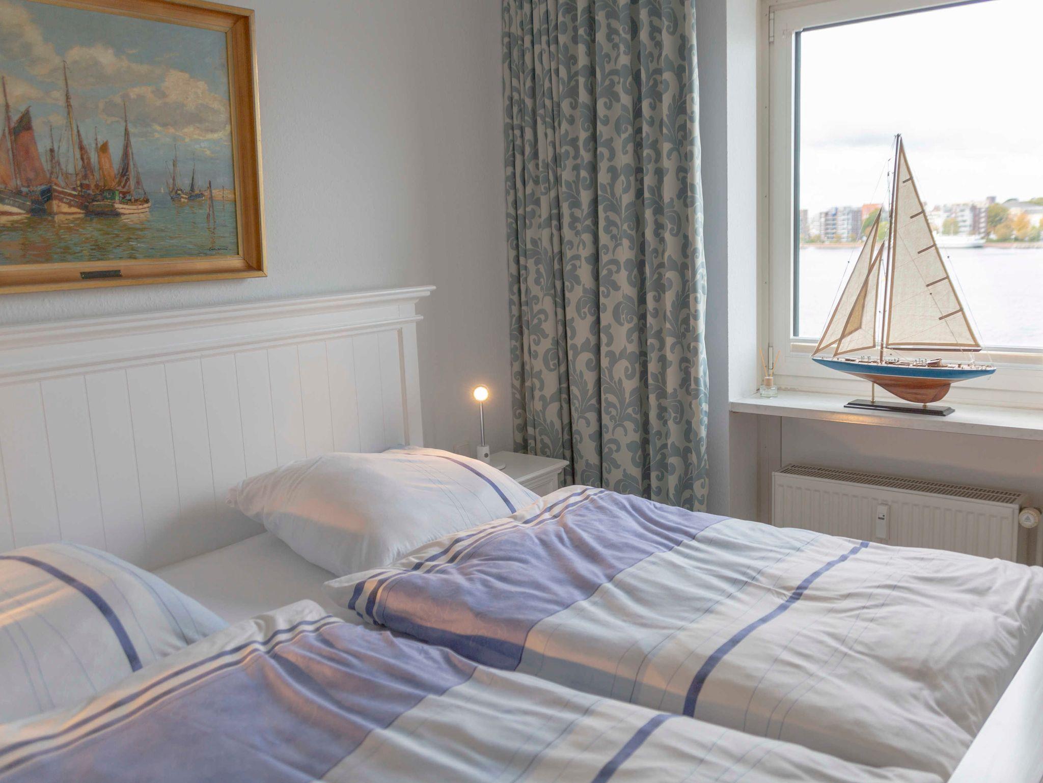 Das schön ausgestattete Schlafzimmer mit Blick auf den Innenhafen, das zweite Schlafzimmer mit eine funktionellen und gemütlichen Schlafcouch, sowie das Bad mit Dusche und einer Waschmaschine lassen den Aufenthalt zum Urlaubserlebnis werden.