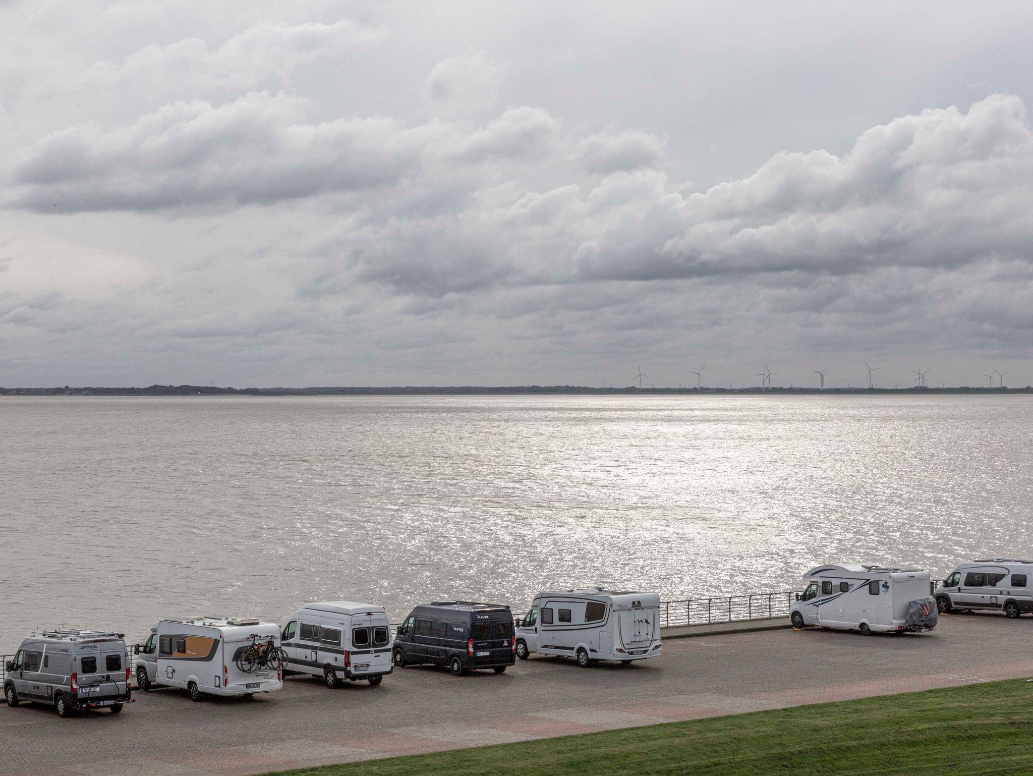 Auf der einen Seite der große Hafen und auf der anderen Seite derJadebusen - mehr Wasser geht nicht !
