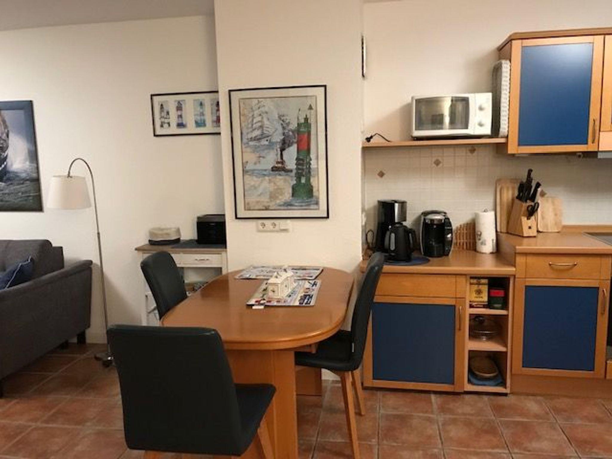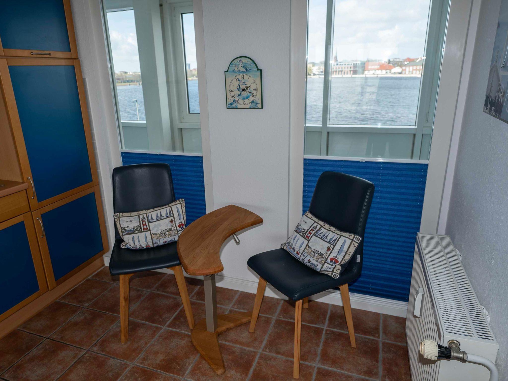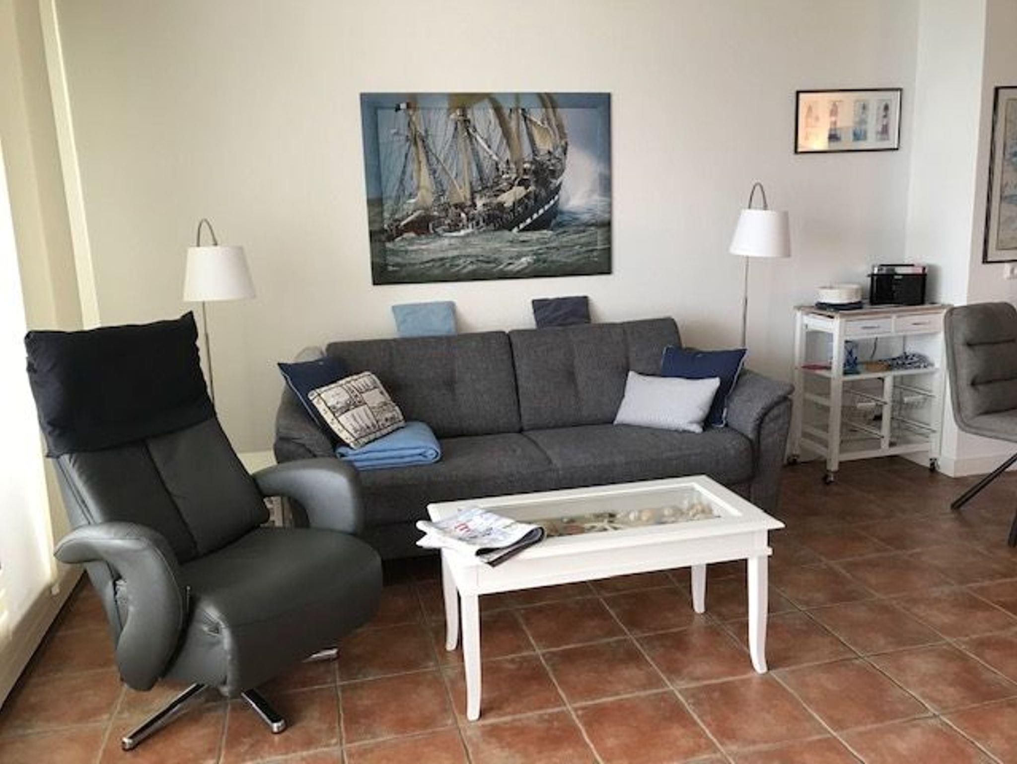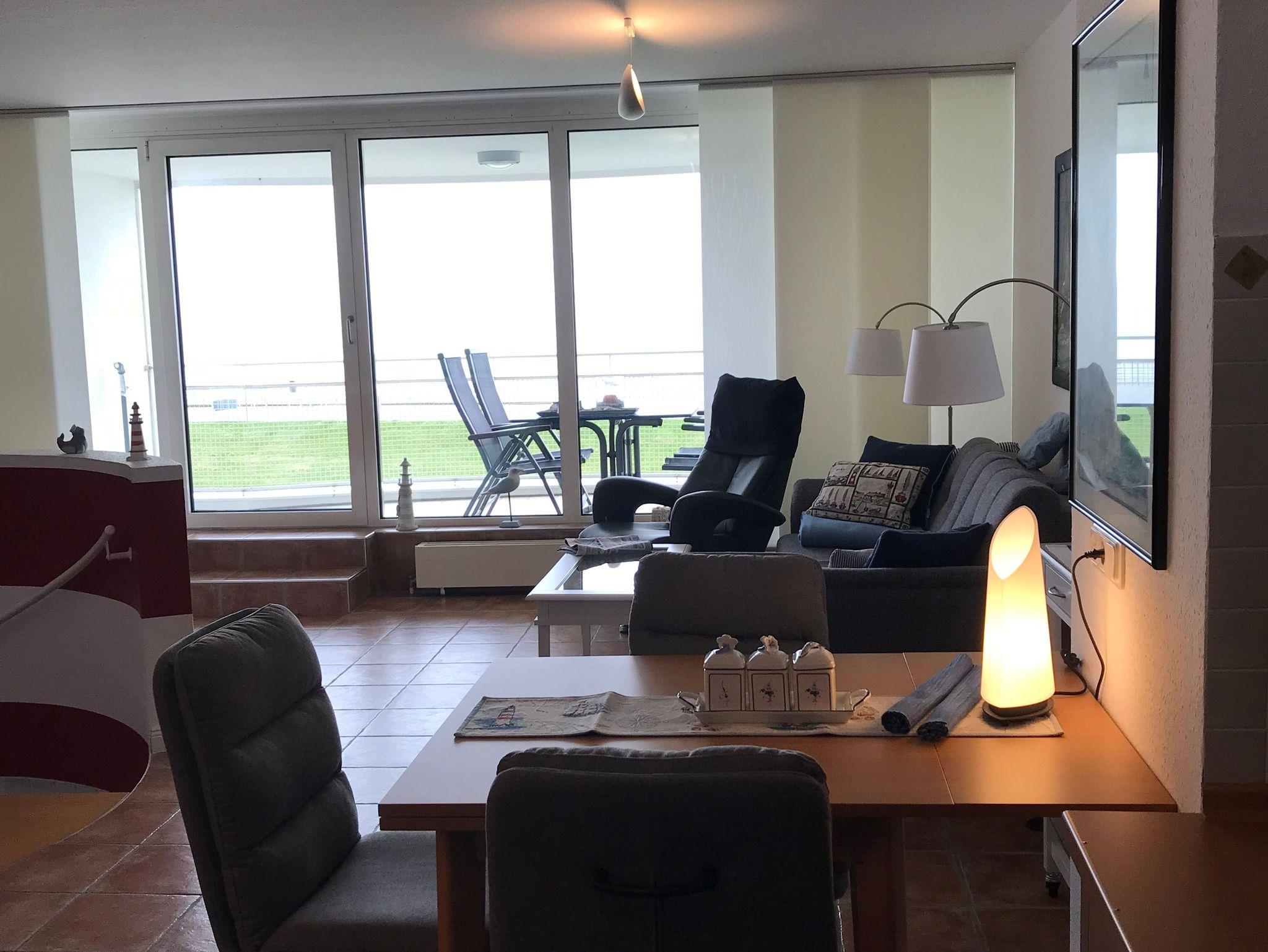 Die Wohnung verfügt über einen großzügigen, hellen Wohnraum, sehr geschmackvoll möbliert, mit Flat-TV, CD- und DVD Player, einen charmanten Essbereich mit integrierter, hochwertig ausgestatteter Küche ( Geschirrspüler, Backofen, Mikrowelle, Kaffeemaschine, Tassimo, Wasserkocher etc. ) und einem großen Südbalkon mit einer bequemen Sitzgarnitur zum Verweilen zwischen den Wassern. Auch Gesellschaftsspiele sowie diverse Bücher zur freien Verfügung hält diese Wohnung für Sie bereit.