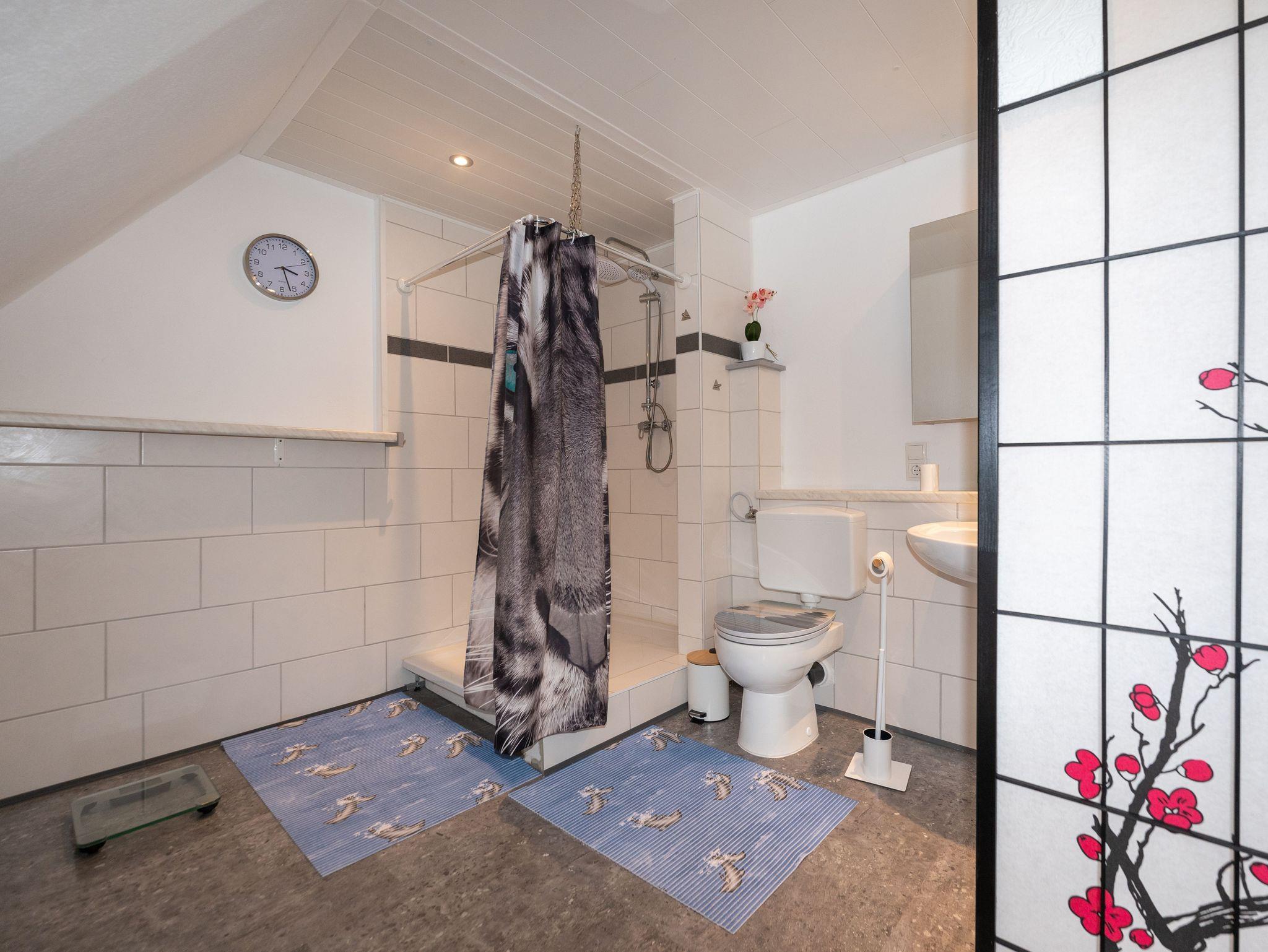 Das großzügige Tagelichtbad mit Dusche, WC und Waschbecken lässt keine Wünsche im Nassparadies offen.
