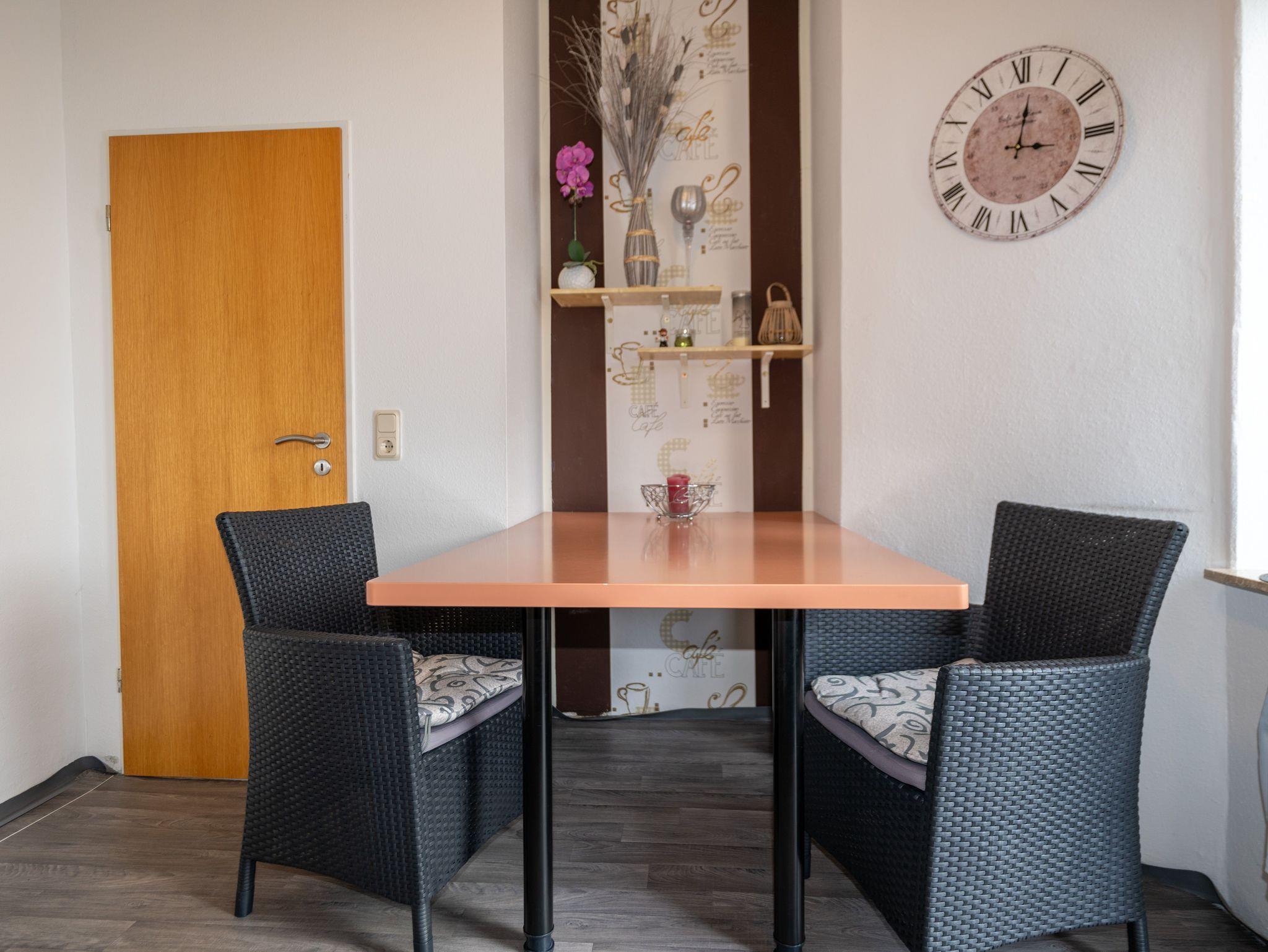 Die gemütliche Wohnküche ist gut ausgestattet mit einem Ceranfeldherd, Backofen, Kühlschrank mit Gefrierschrank,Toaster, Mikrowelle, Wasserkocher, Kaffeemaschine sowie einer Tassimo- Kaffemaschine sowie jeder Menge Geschirr und Kochutensilien. Ein Klappmöbel lässt sich bei Bedarf zu einem zusätzliches Einzelbett umfunktionieren. Ein gemütlicher Esstisch mit 3 Stühlen läd zum Speisen ein. Von der Küche aus gelangen Sie auf den überdachten Balkon. Auf dem Balkon ist das Rauchen gestattet.