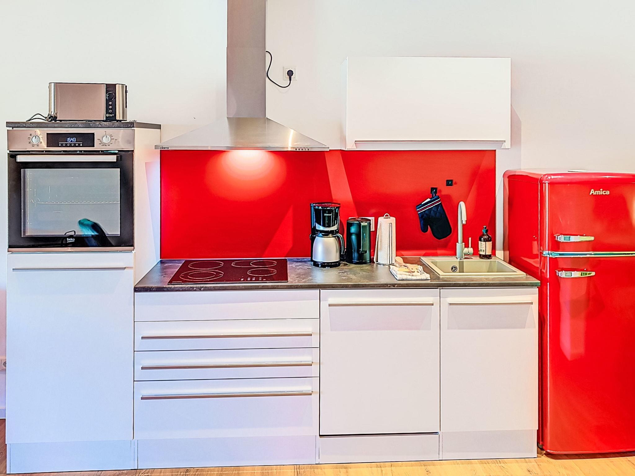 "Deich-Liebe und Deich-Moment", 4-Zimmer-Wohnung 106 m2, im Obergeschoss. Komfortabel und gemütlich eingerichtet: grosses Wohn-/Esszimmer mit 1 Diwanbett (140 cm, Länge 200 cm), TV und Flachbildschirm. Ausgang zur Terrasse. 2 Zimmer, jedes Zimmer mit 1 Doppelbett (180 cm, Länge 200 cm). Grosses Wohn-/Esszimmer mit 1 Diwanbett (140 cm, Länge 200 cm), TV (Flachbildschirm). Ausgang zur Terrasse. Grosse, offene Küche (Backofen, Geschirrspüler, 4 Glaskeramikplatten, Toaster, Wasserkocher, elektrische Kaffeemaschine) mit Esstisch. 2 Duschen/WC. G-Heizung, Fussbodenheizung. Grosse Terrasse 10 m2. Terrassenmöbel. Sehr schöne Panoramasicht auf Deich. Zur Verfügung: Internet (WLAN, gratis). Maximal 2 Haustiere/Hunde erlaubt. Keine interne Verbindung zwischen den separaten Wohneinheiten. Eine zweite identische Küche ist vorhanden. Die Kombination besteht aus den Wohnungen Deich-Liebe und Deich-Moment.