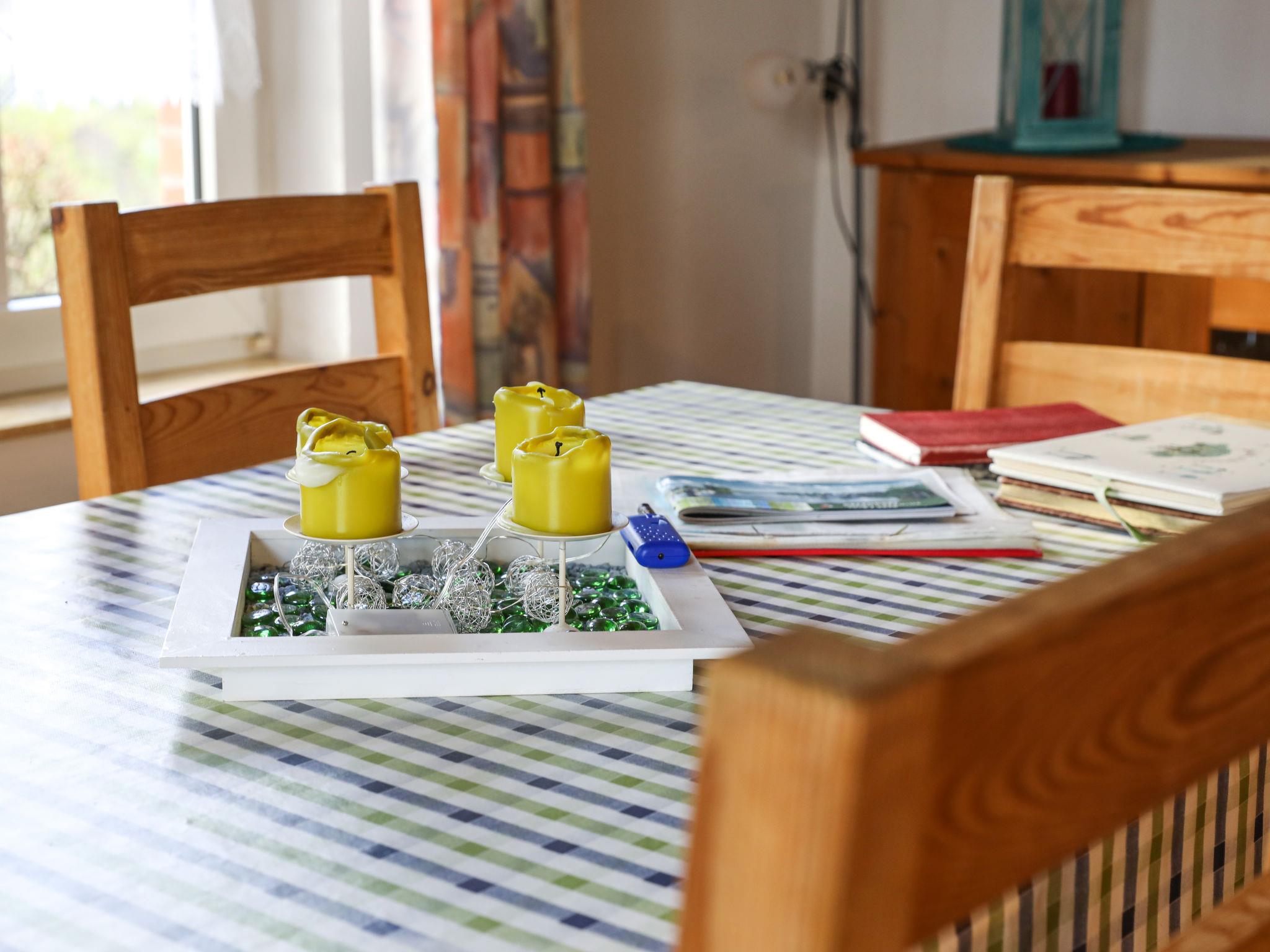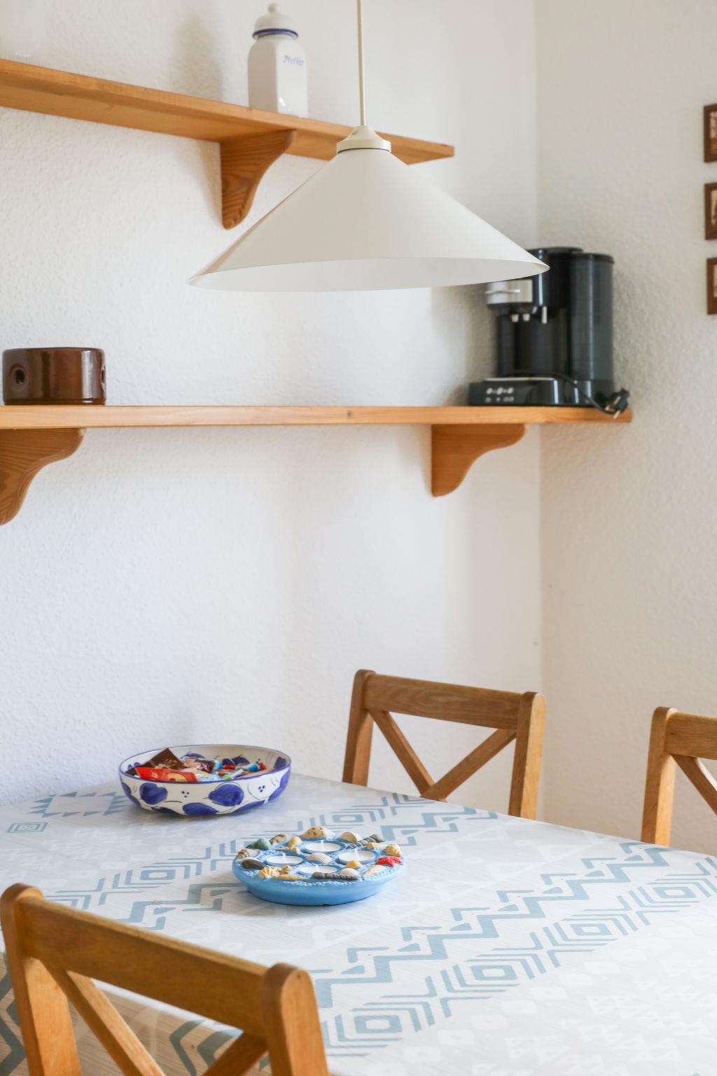 3-Zimmer-Wohnung 100 m2 im 1. Stock. Geräumig, gemütlich eingerichtet: Wohn-/Esszimmer mit Esstisch, Sat-TV, Stereoanlage und DVD. 1 Zimmer mit 1 Doppelbett. 1 Zimmer mit 1 x 2 Etagenbetten, 1 Doppelbett. Küche (Backofen, Geschirrspüler, 4 Glaskeramikplatten, Toaster, Wasserkocher, Mikrowelle, Tiefkühler, elektrische Kaffeemaschine). Dusche/WC. Ölheizung. Zur Verfügung: Kinderhochstuhl, Babybett. Internet (WLAN, gratis). Bitte beachten: Maximal 3 Haustiere/Hunde erlaubt. Rauchmelder, Feuerlöscher.