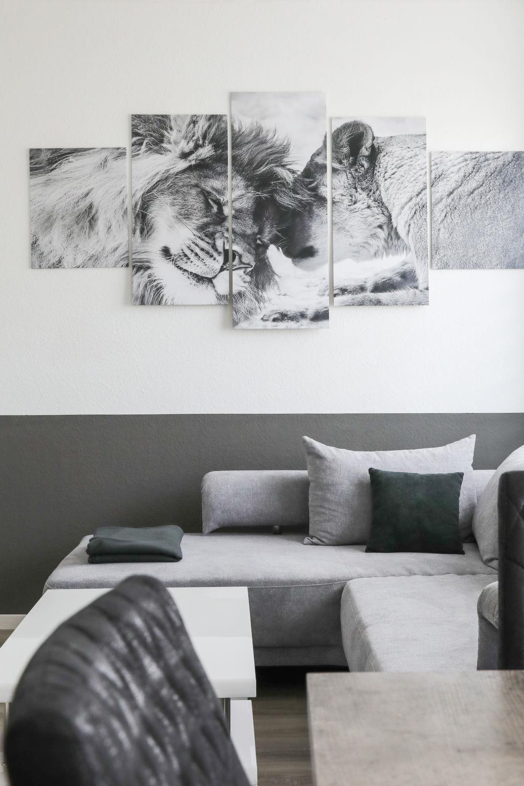 5-Zimmer-Wohnung 145 m2, im Erdgeschoss. Geräumig, vollständig renoviert im Jahre 2022, modern und stilvoll eingerichtet: offenes grosses Wohn-/Esszimmer mit Esstisch, Kabel-TV und Flachbildschirm. Grosses Wohn-/Schlafzimmer mit 1 Doppeldiwanbett, Kabel-TV und Flachbildschirm. 1 Zimmer mit 1 Doppelbett (180 cm, Länge 200 cm). 1 Zimmer mit 1 Doppelbett (180 cm, Länge 200 cm), Kabel-TV und Flachbildschirm. 1 Zimmer mit 2 Betten (90 cm, Länge 200 cm). Offene Küche (Backofen, Geschirrspüler, 4 Glaskeramikplatten, Toaster, Wasserkocher, Mikrowelle, elektrische Kaffeemaschine). 3 Duschen/WC. Heizung. Zur Verfügung: Internet (Wireless LAN, extra). Bitte beachten: Nichtraucher-Unterkunft. Rauchmelder. Keine interne Verbindung zwischen den separaten Wohneinheiten. Zusätzlich befindet sich im Erdgeschoss eine zweite Küche (Backofen, Geschirrspüler, 4 Glaskeramikherd Platten, Toaster, Mikrowelle, elektrische Kaffeemaschine).