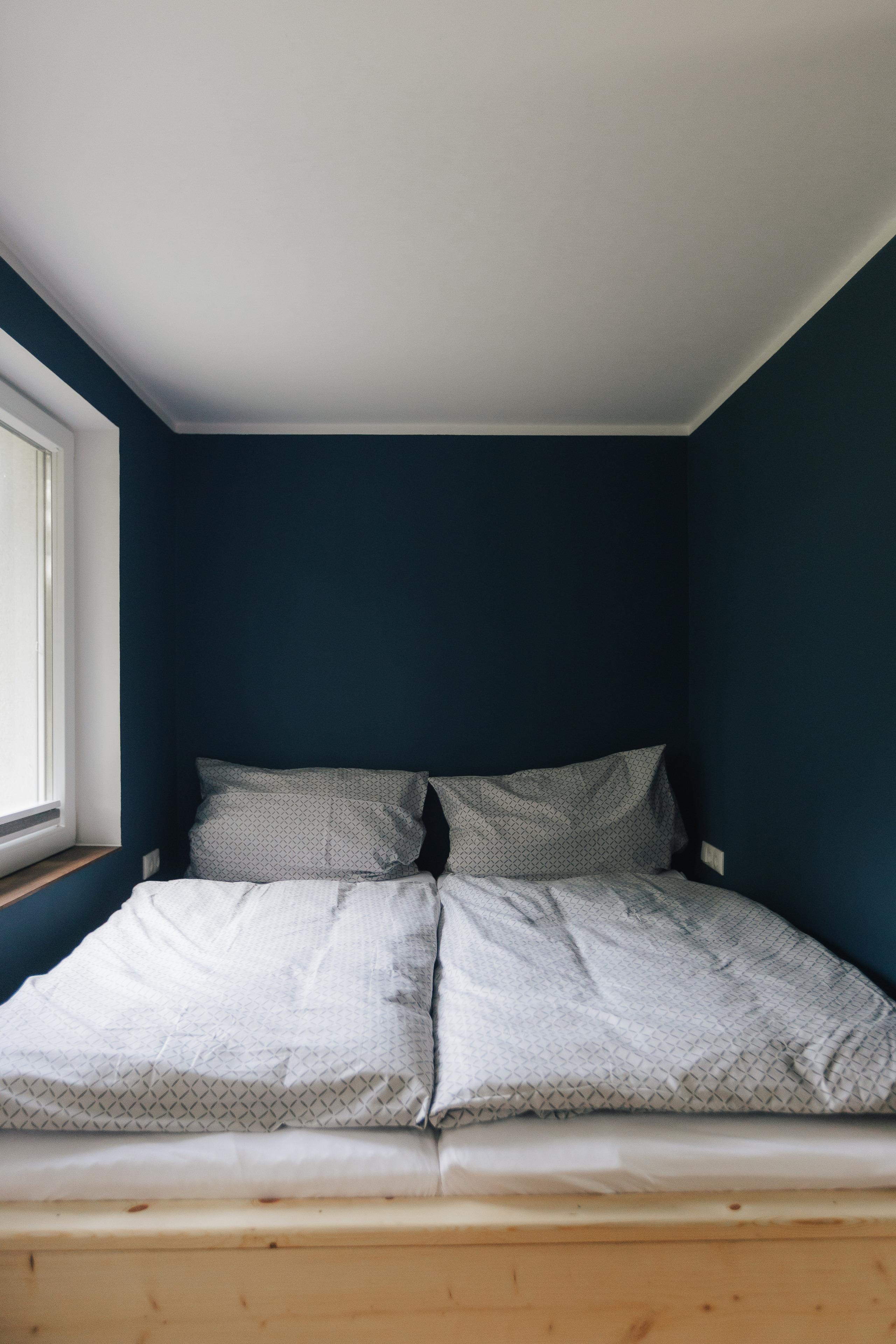 Im gemütlichen Familienschlafzimmer findest Du ein bequemes Doppelbett (180x200), sowie ein Etagenbett mit 2 Betten (90x200) und ausreichend Staumöglichkeiten. Für z. B. Oma und Opa oder weiteren Gästen, haben wir ein zweites liebevoll gestaltes Schlafzimmer mit einem Doppelbett (160x200) geschaffen.