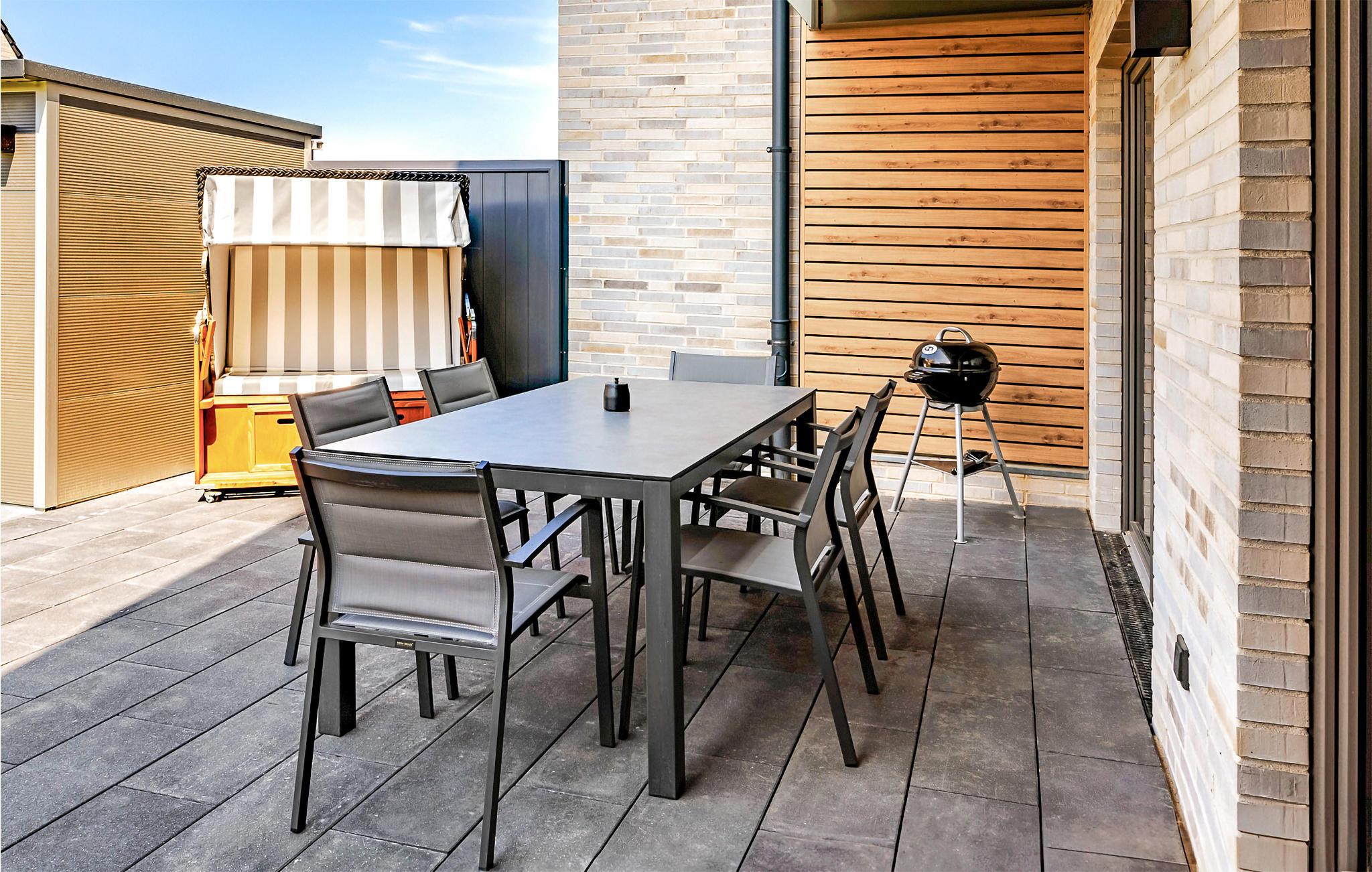 In Ihrem Feriendomizil erwartet Sie hoher Komfort im landestypischen Stil. Hier trifft moderne Architektur auf eine stilvolle Einrichtung und zurückhaltende Farben, so dass Sie in elegantem Ambiente entspannen. Genießen Sie die Sonnenuntergänge von der eigenen Terrasse oder dem Balkon aus oder verweilen Sie in den großzügig geschnittenen Räumen. Entspannen Sie nach einem herrlichen Tag am Strand oder einem Ausflug in der Umgebung in der hauseigenen Sauna oder verausgaben Sie sich vor dem gemeinsamen Abendessen bei einer Partie Kicker. Ein eigenes Grundstück, das zu jedem der versetzten Reihenhäuser gehört, macht „An den Wehlen“ zu einem Refugium ohne Kompromisse.